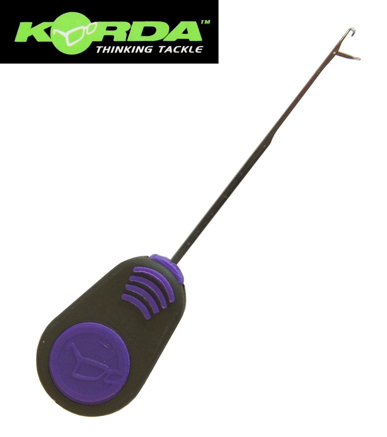 Korda Fine Latch Needle purple - Ködernadel - Die Ködernadel von Korda eignet sich zum Aufziehen verschiedener Karpfenköder auf ein Haarvorfach beim Karpfenangeln. Dazu besitzt die Boilienadel eine abgerundete Spitze, die in das Haar eingehakt und anschließend mit dem Sicherheitsverschluss verschlossen wird, so dass das Haar nicht abrutschen kann. Anschließend wird der Karpfenköder von der Nadel auf das Haar übertragen und beispielsweise mit einem Boiliestopper gesichert. Die Ködernadel eignet sich sehr gut für weiche Softbaits, wie unter anderem Mais oder weiche Pelletköder. Aufgrund der Konstruktion in Kombination mit dem flachen und breiten Griff, ist eine sehr leichte Bedienung gegeben und das Aufziehen verschiedener Köderarten erfolgt im Handumdrehen.
