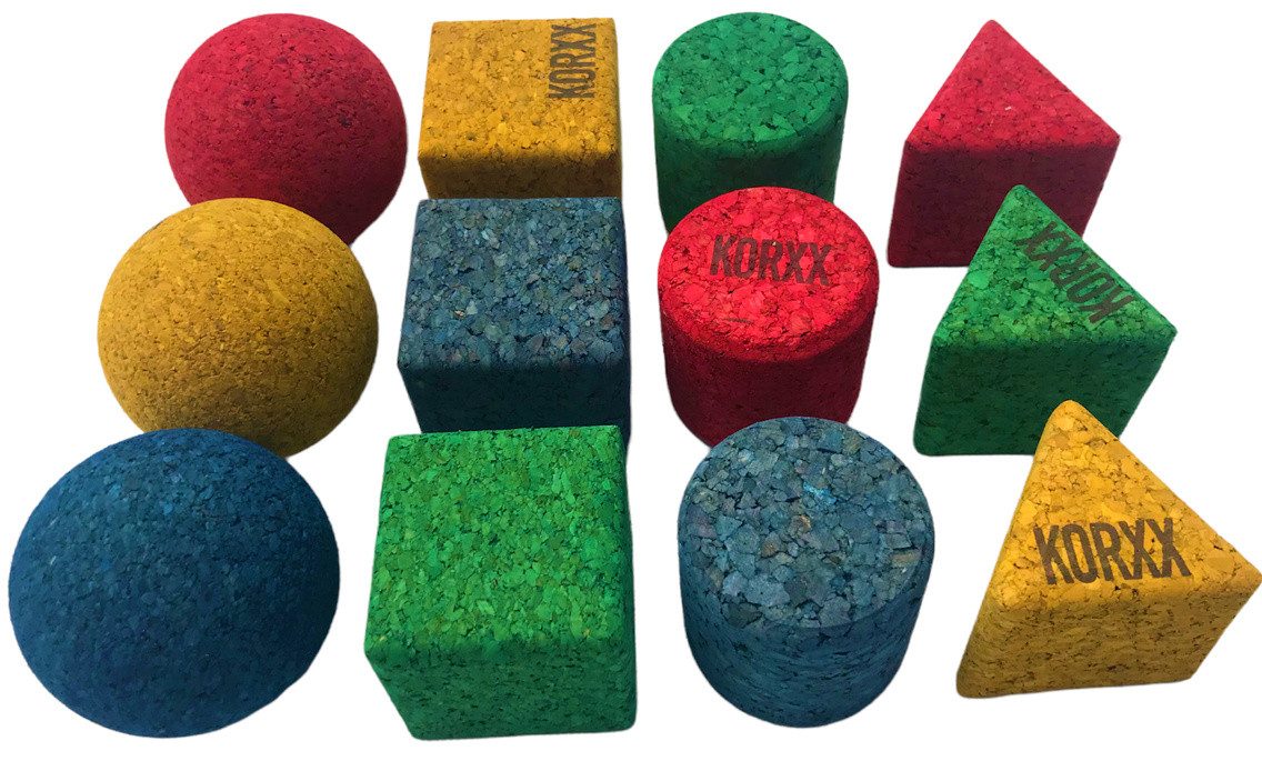 Leicht, weich, leise und stabil: Das sind die minimalistischen Bauklötze von KORXX. Sie bestehen zu 100% aus gepresstem Korkgranulat, das aus nachwachsenden Hölzern in einer nachhaltigen Waldwirtschaft produziert wird. Durch die besondere Oberfläche haften die Klötze hervorragend aneinander und ermöglichen so stabile Konstruktionen ohne Verrutschen. Das freie Kreieren von Strukturen fördert Kreativität und Vorstellungsvermögen und schafft Selbstvertrauen durch positive Erfolgserlebnisse. Die KORXX-Bauklötze sind anti-allergen und bergen aufgrund ihres Gewichtes ein geringeres Verletzungsrisiko, so dass bereits kleinste Kinder ab dem zweiten Lebensjahr mit ihnen spielen können.