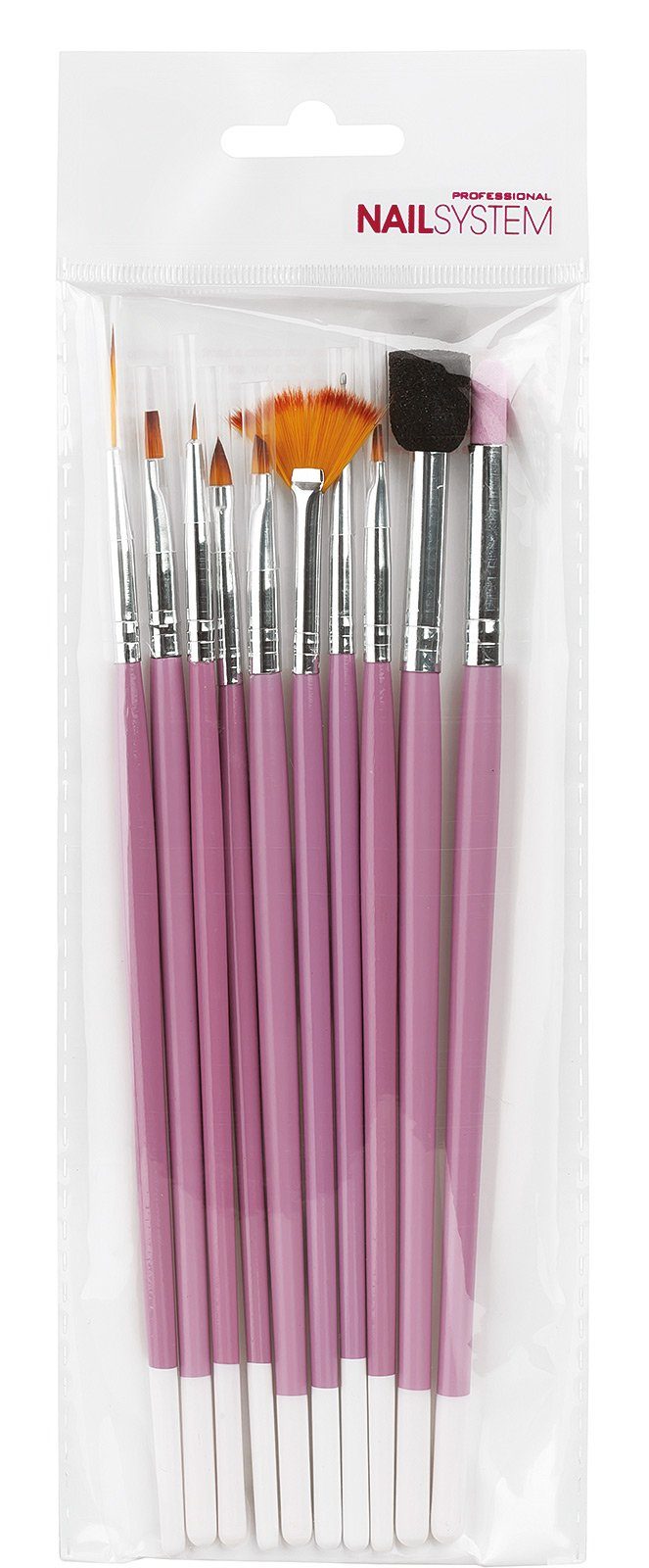 Professionelles Nails-Art-Set mit 10 Pinseln Ein komplettes Set an professionellen Pinseln ,die ein gleichmäßiges und präzises Auftragen gewährleisten. Jeder Pinsel wurde ausgewählt, um schnelle und tatellose Ergebnisse zu erziehlen und die effizienz zu maximieren. 1.Dekopinsel mit Metallspitze 2.Kleiner Fächerpinsel 3.Flacher Pinsel mit ausgedünnter Spitzenpartie 4.Pinsel mit flachem Schwamm 5.Pinsel mit schrägem Bimsstein 6.Katzenzungenpinsel 7.Schräger Pinsel für Mikrodekoration 8.Dekopinsel, lange und feine Spitze 9.Linerpinsel mit ultradünner Spitze 10.Flacherpinsel für Dekos