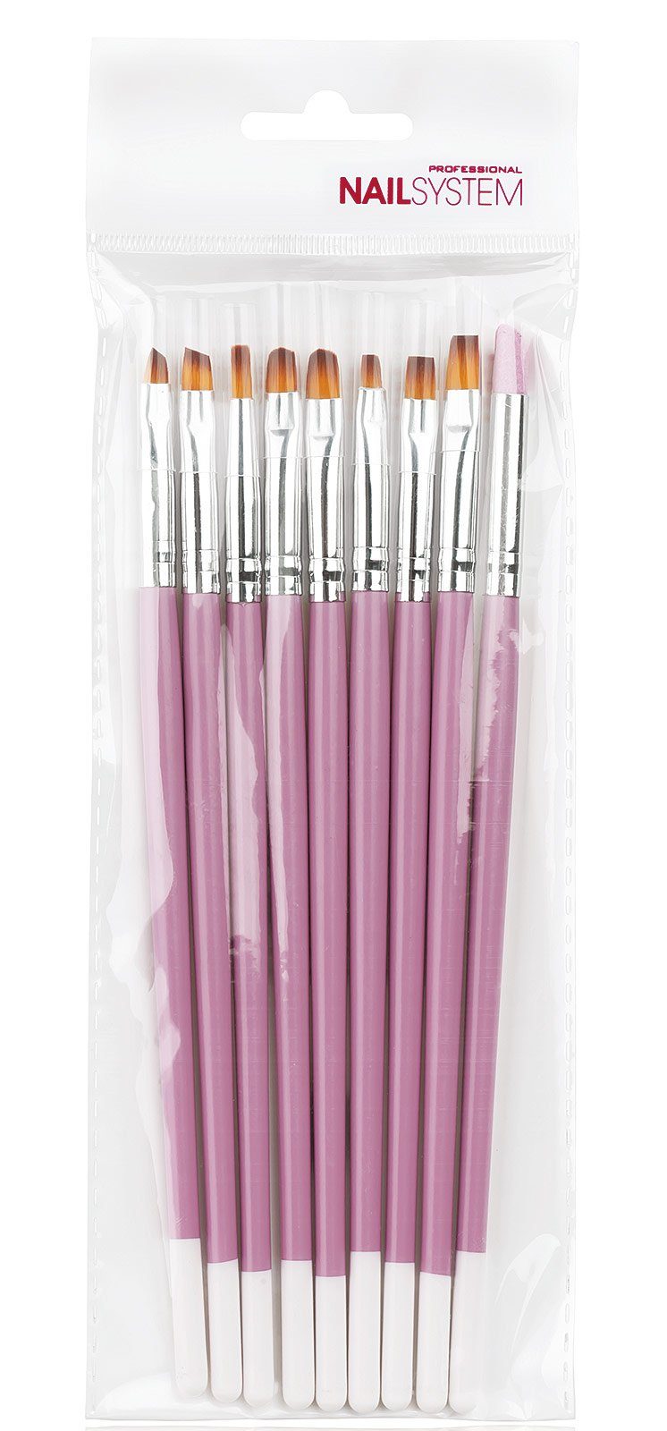 Professionelles Nails-Art-Set mit 9 Pinseln Ein komplettes Set an professionellen Pinseln ,die ein gleichmäßiges und präzises Auftragen gewährleisten. Jeder Pinsel wurde ausgewählt, um schnelle und tatellose Ergebnisse zu erziehlen . 1.Runder Pinsel 2.Mittlerer Flachpinsel 3.Kleiner Flachpinsel 4.Großer Flachpinsel 5.Pinsel mit schrägem Bimsstein 6.Schräger Pinsel Smile Line 7.Schräger Pinsel 8.Flacher Pinsel mit abgerundeter Spitze, groß 9.Flacher Pinsel mit abgerundeter Spitze, mittel