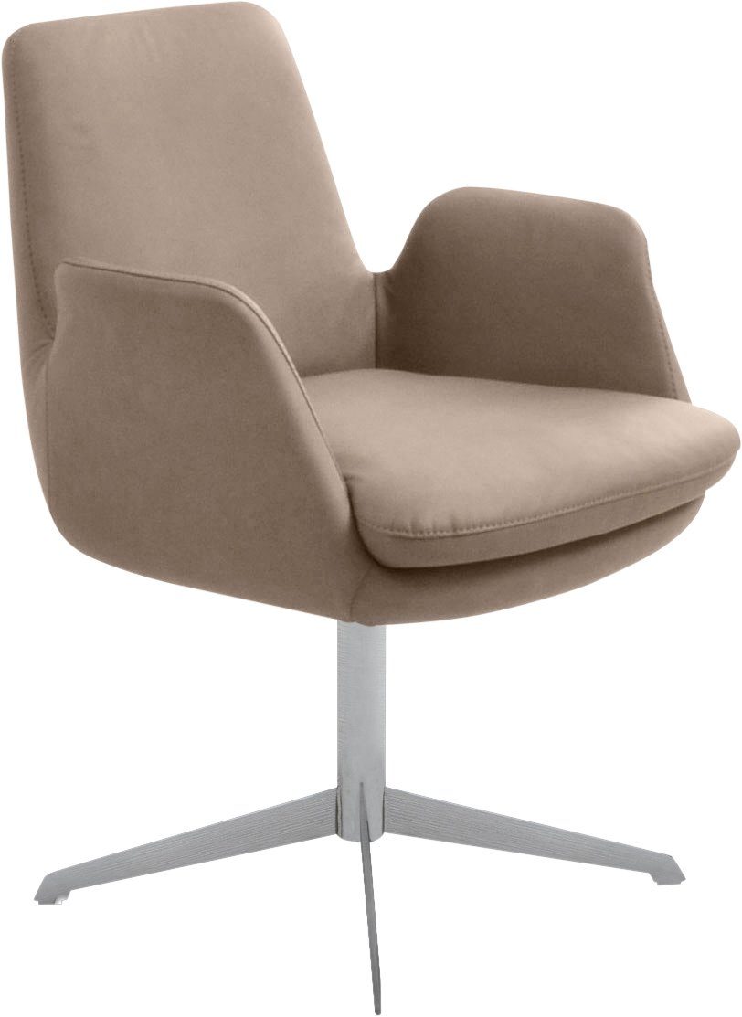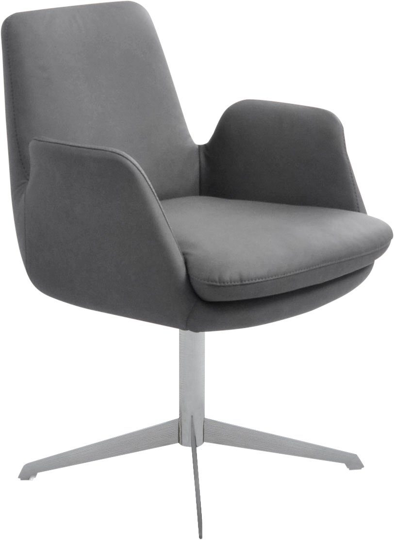 Wissenswertes | Funktion: mit Rückholfunktion, 360° drehbar Fuß: 4-Fuß Drehkreuz in Metall schwarz oder Edelstahloptik Gestell: stabile Formschale Nahtbild: Zierkappnaht Sitz und Rücken: Solider Polyätherschaum |