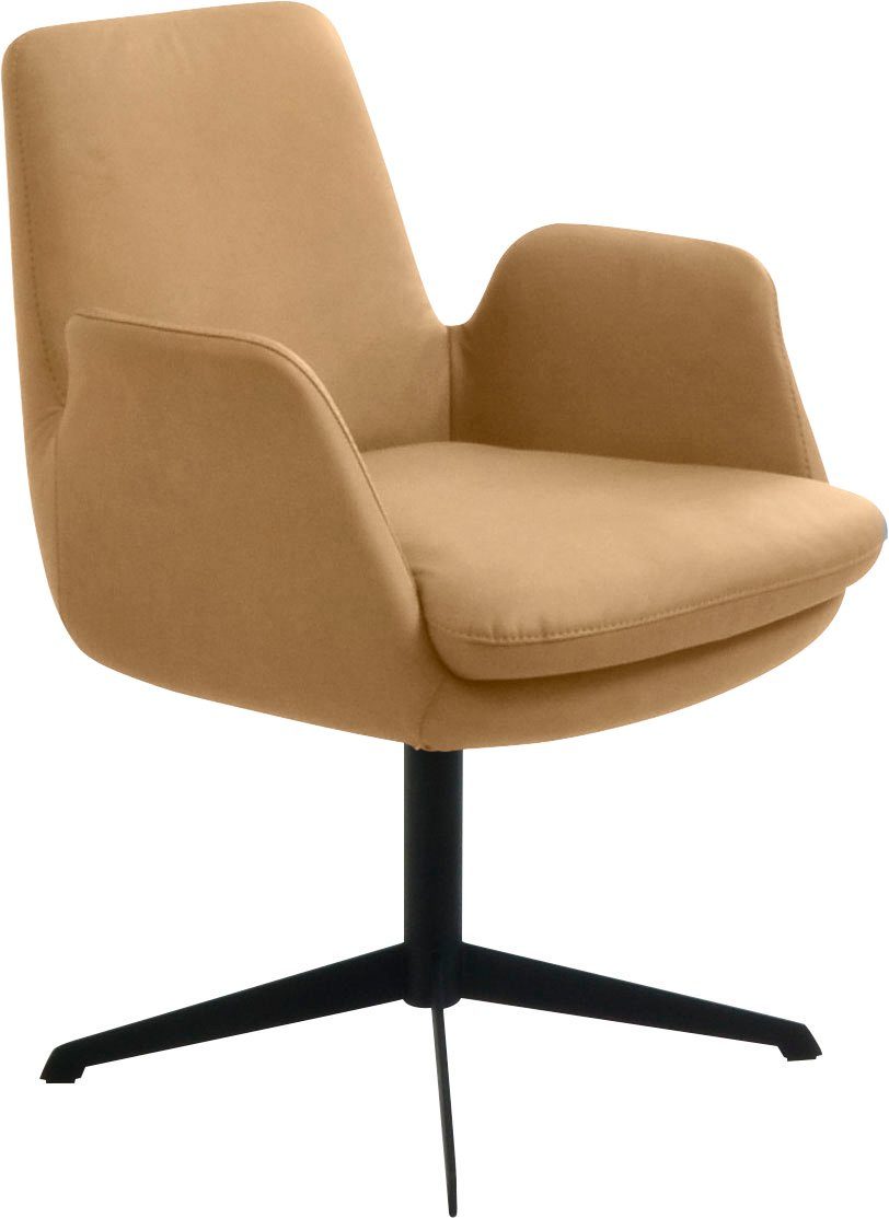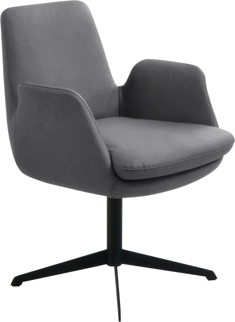 Wissenswertes | Funktion: mit Rückholfunktion, 360° drehbar Fuß: 4-Fuß Drehkreuz in Metall schwarz oder Edelstahloptik Gestell: stabile Formschale Nahtbild: Zierkappnaht Sitz und Rücken: Solider Polyätherschaum |