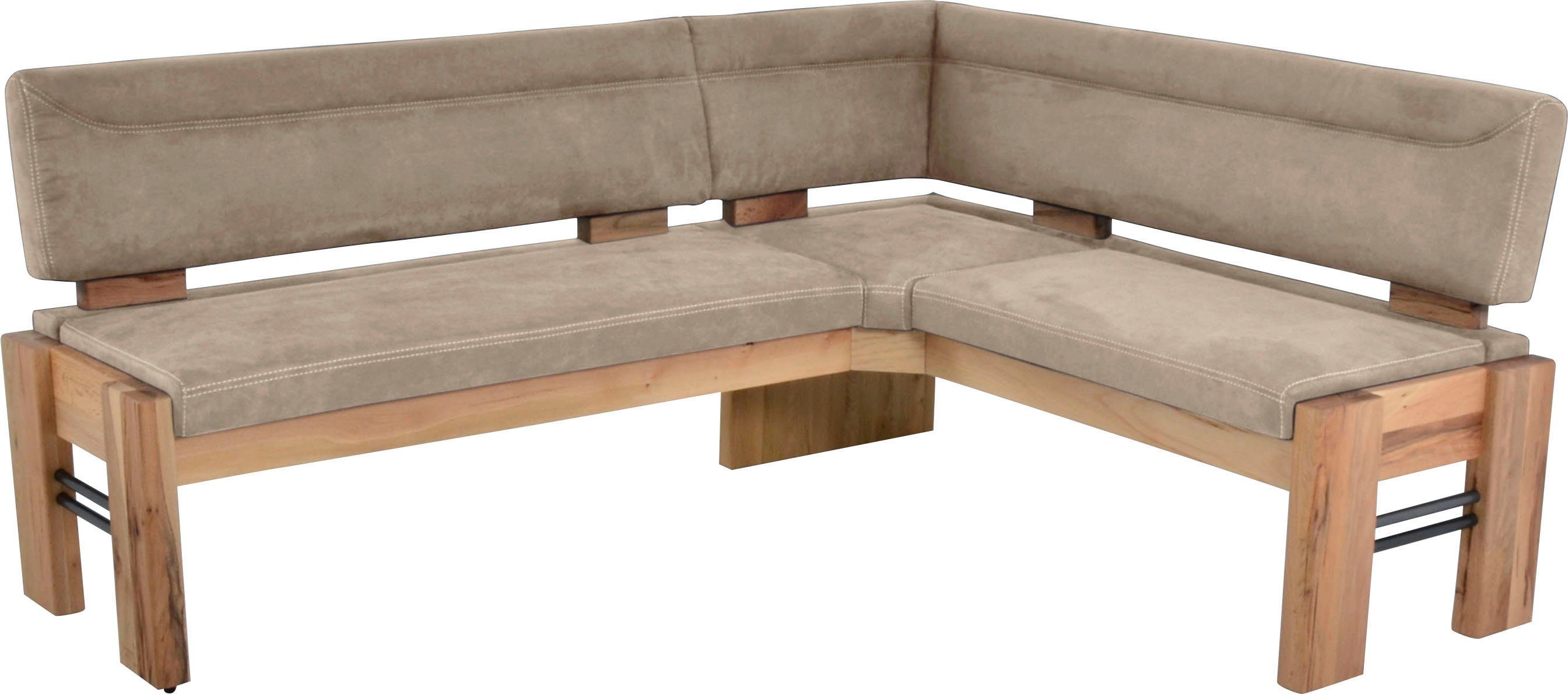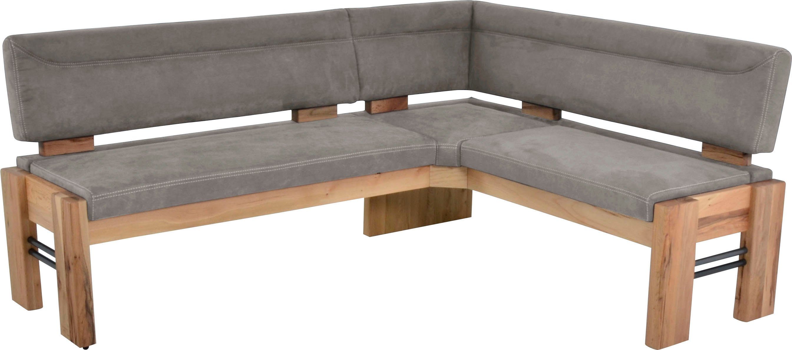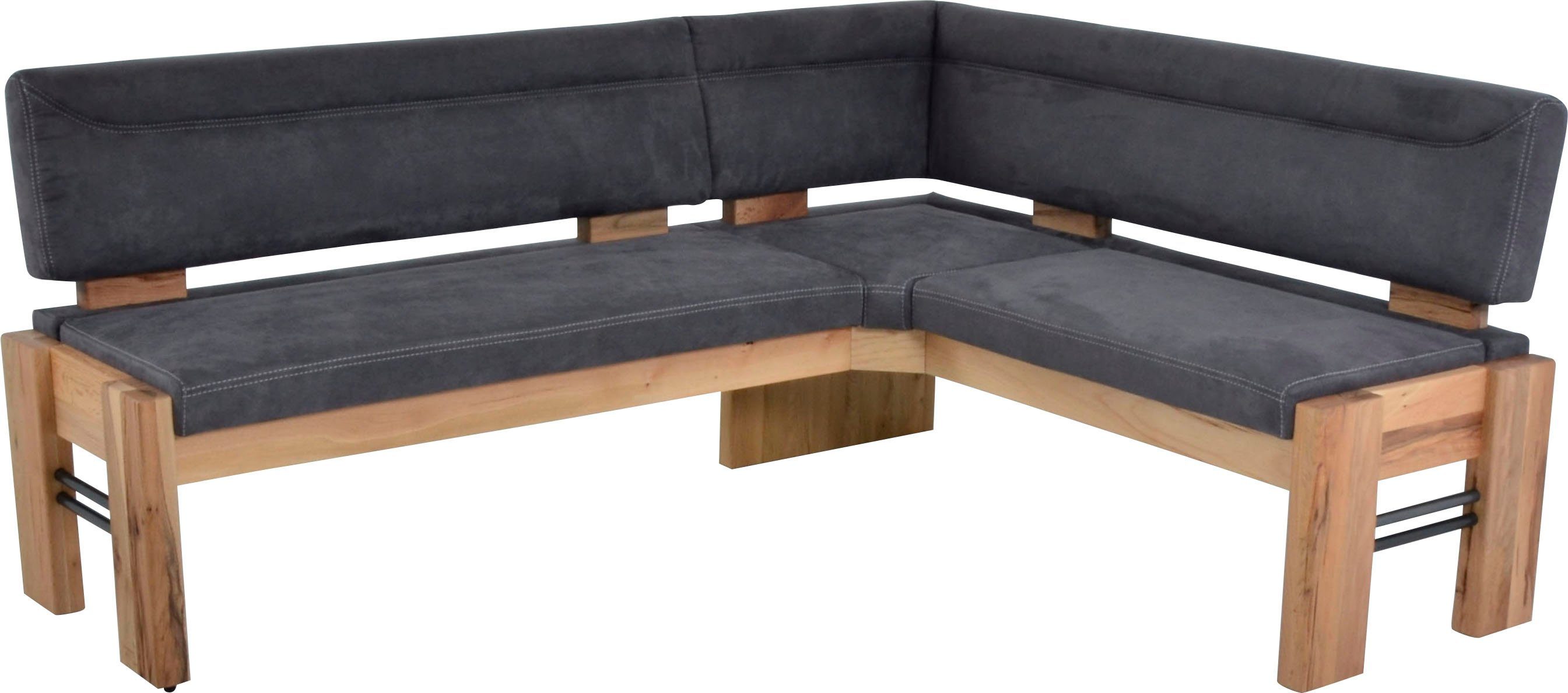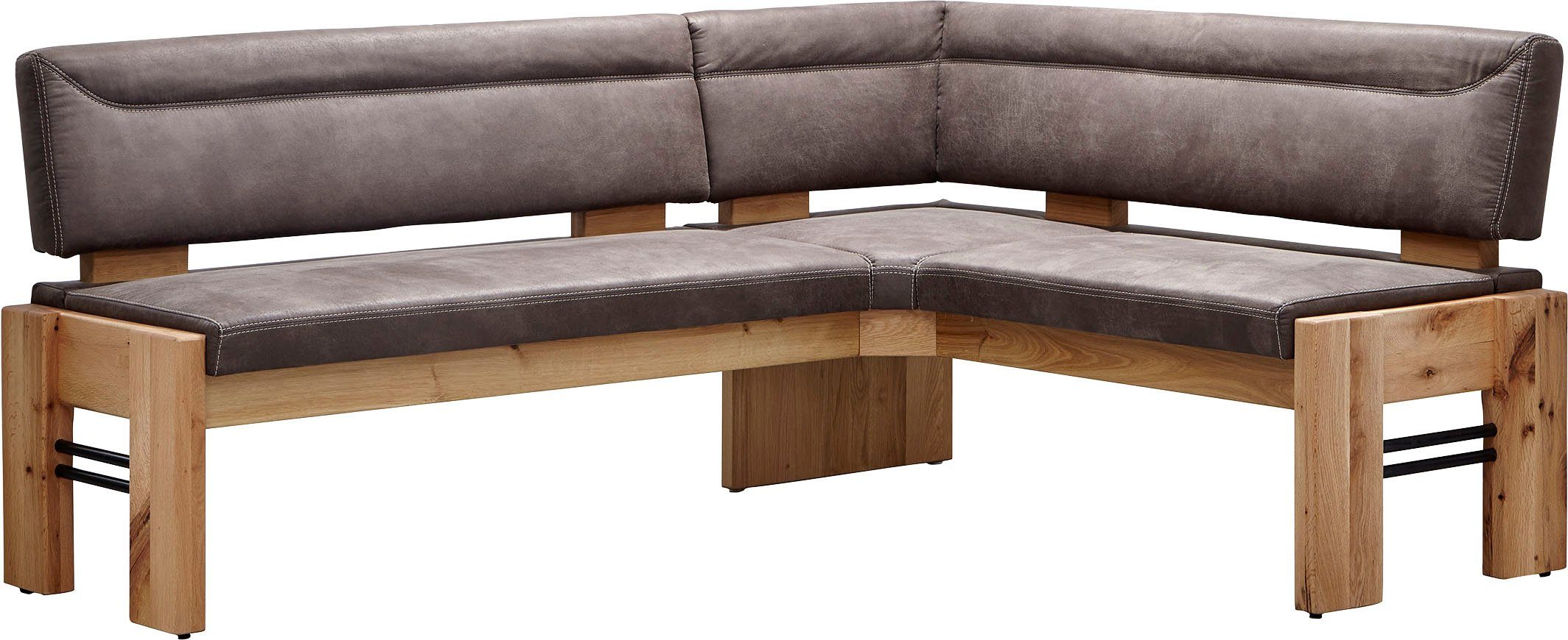 Die Eckbank »Floyd« von K+W Komfort & Wohnen mit Stauraum sorgt für mehr Behaglichkeit in Küche und Esszimmer. Mit ihrer Kombination aus rustikalem Massivholz und Roheisen ist sie ein optisches Highlight in deiner Einrichtung. Eine farblich abgesetzte Kontrastnaht verleiht der Sitzbank einen stilvollen Akzent. In mehreren Farbvarianten erhältlich, kannst du sie harmonisch in dein vorhandenes Interieur integrieren. Unter der Sitzfläche verfügt die Bank über praktische Stauraummöglichkeiten für beispielsweise Textilien. Für einen hohen Komfort ist sie mit einer bequemen Polsterung ausgestattet. Ein Highlight in deinem Essbereich: die Eckbank »Floyd« von K+W Komfort & Wohnen mit Stauraum.