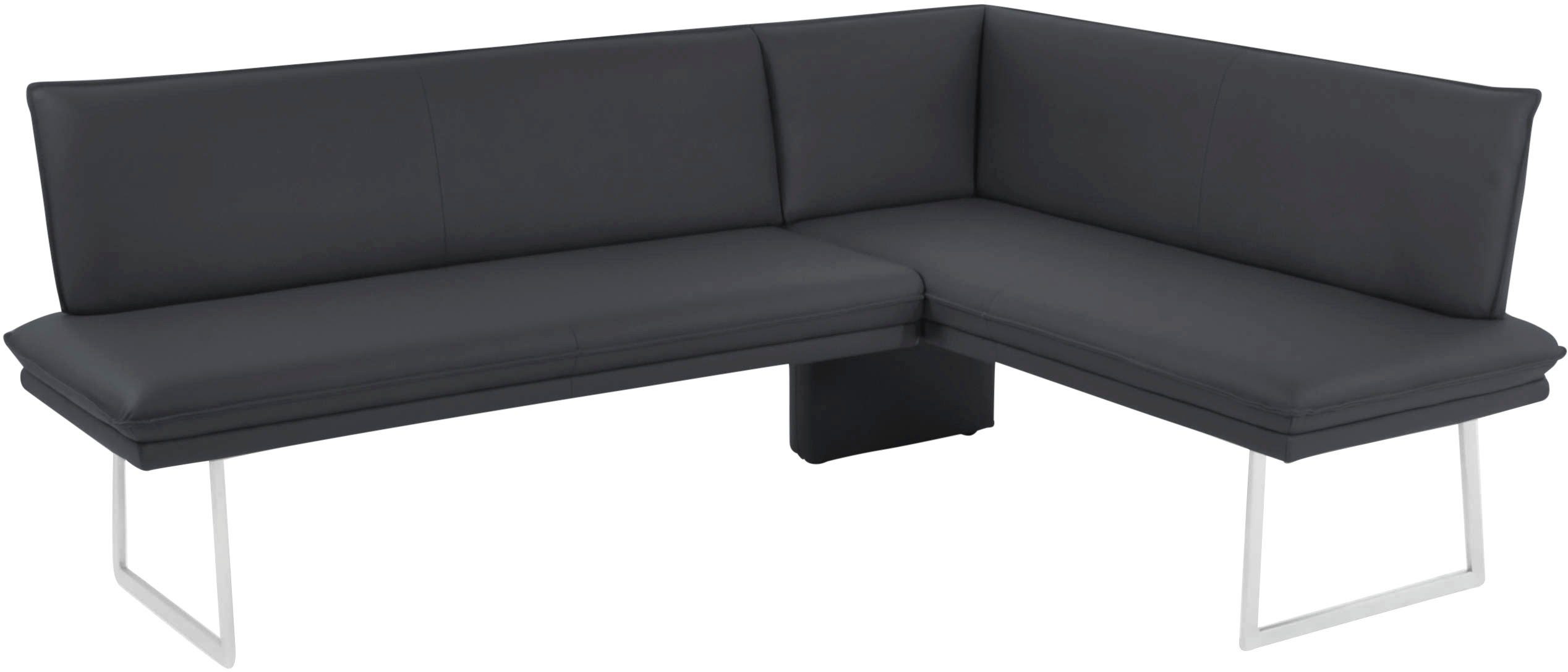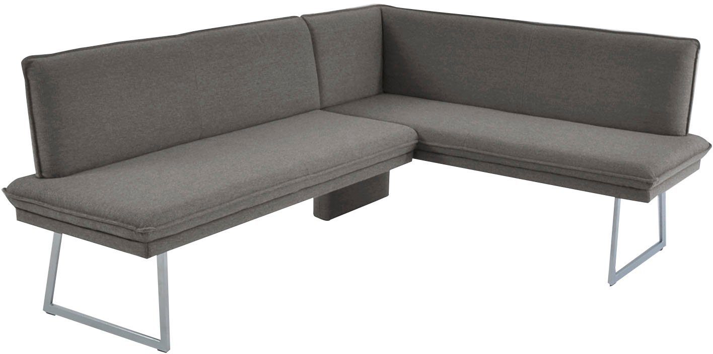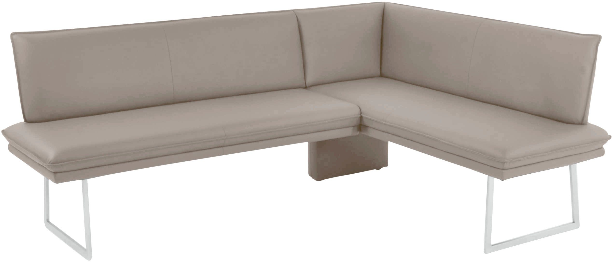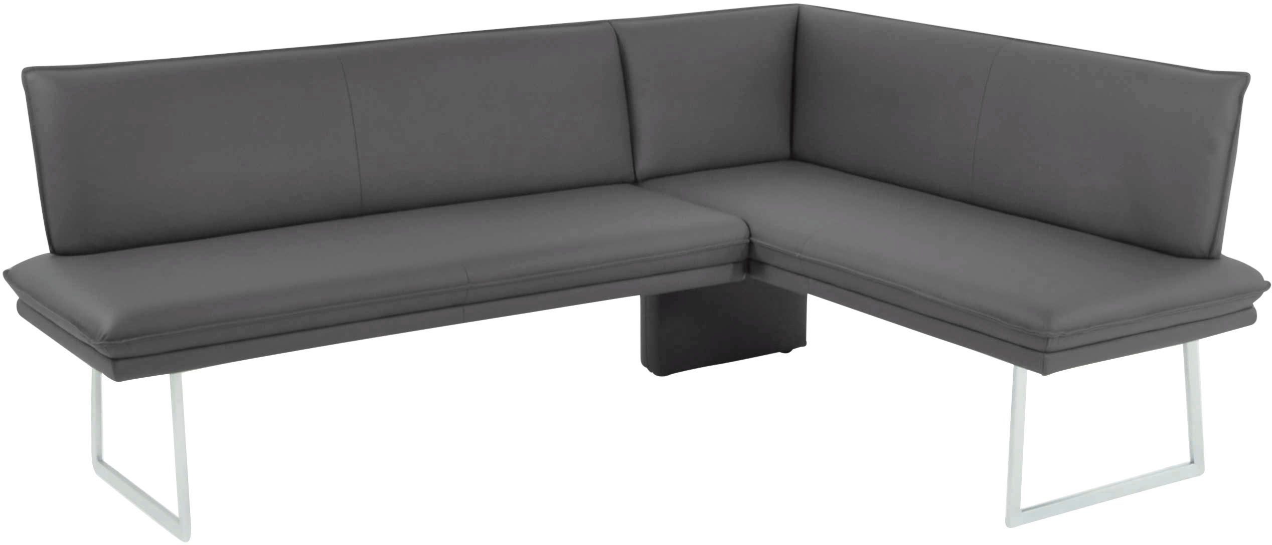 Highlight für dein Esszimmer: Die Eckbank von K+W Komfort & Wohnen im zeitlos-eleganten Design begeistert durch Form und Funktion. Geprägt ist das Erscheinungsbild durch die designorientierte Formensprache sowie die raffinierten Gestaltungshighlights. Zu diesen zählen neben der handwerklichen Sattlernaht auch die Kufen in gebürsteter Edelstahloptik. Da du beim Bezug die Wahl zwischen mehreren angesagten Farbvarianten hast, kannst du das Esszimmermöbel passend zum Raumambiente bestellen. Neben der Optik begeistert das Sitzmöbel durch den hohen Sitzkomfort. Dieser ist durch die Kombination aus Wellenunterfederung und solider Polyätherschaumpolsterung gegeben. Du kannst die Eckbank von K+W Komfort & Wohnen im zeitlos-eleganten Design auch in einer Wohnküche einsetzen.