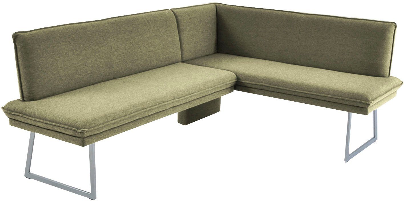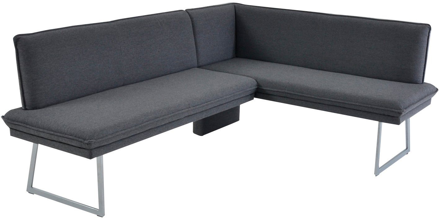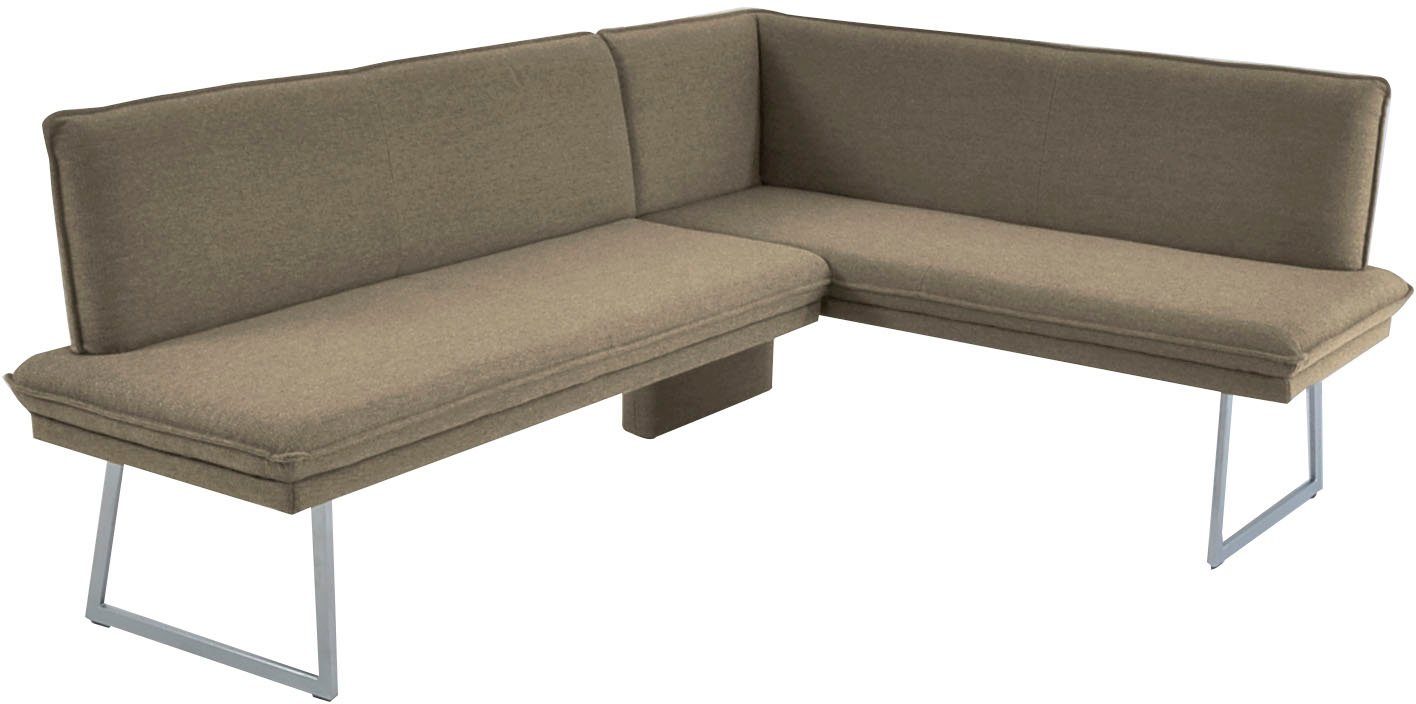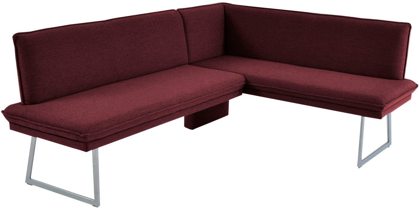 Highlight für dein Esszimmer: Die Eckbank von K+W Komfort & Wohnen im zeitlos-eleganten Design begeistert durch Form und Funktion. Geprägt ist das Erscheinungsbild durch die designorientierte Formensprache sowie die raffinierten Gestaltungshighlights. Zu diesen zählen neben der handwerklichen Sattlernaht auch die Kufen in gebürsteter Edelstahloptik. Da du beim Bezug die Wahl zwischen mehreren angesagten Farbvarianten hast, kannst du das Esszimmermöbel passend zum Raumambiente bestellen. Neben der Optik begeistert das Sitzmöbel durch den hohen Sitzkomfort. Dieser ist durch die Kombination aus Wellenunterfederung und solider Polyätherschaumpolsterung gegeben. Du kannst die Eckbank von K+W Komfort & Wohnen im zeitlos-eleganten Design auch in einer Wohnküche einsetzen.