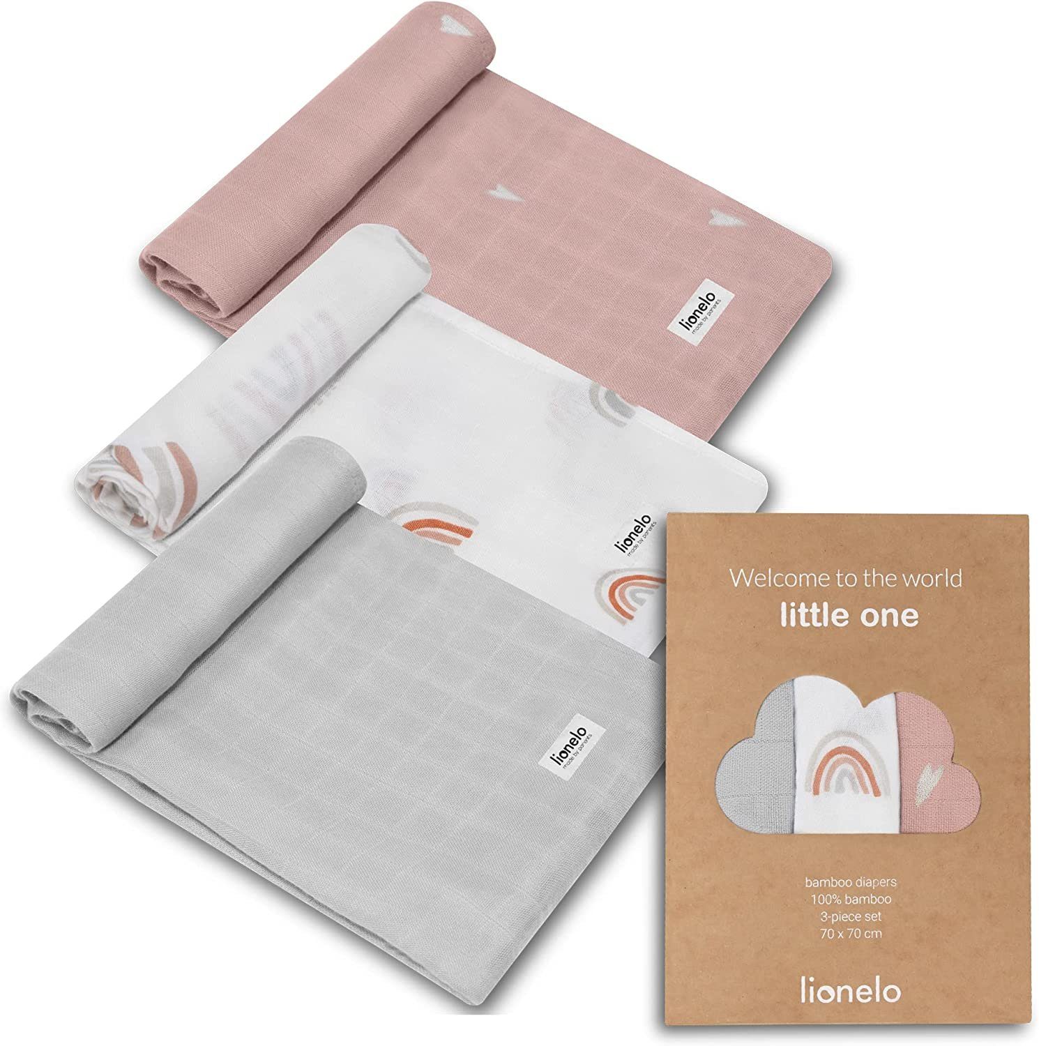 Die 3 Windeln (70 x 70 cm) aus extrem weichem und zartem Stoff aus 100% Bambusfasern können von den ersten Lebenstagen verwendet werden. Neben der Verwendung als Windel können sie auch als leichte Decke, Wickelunterlage, Laken, praktisches Handtuch oder Kuscheltuch verwendet werden. Das Pucken eines Babys mit der Bambusdecke wirkt sich positiv auf seine Entwicklung aus, eine fortschrittliche Anpassung an die neue Realität ermöglichend und hilft beim Einschlafen.