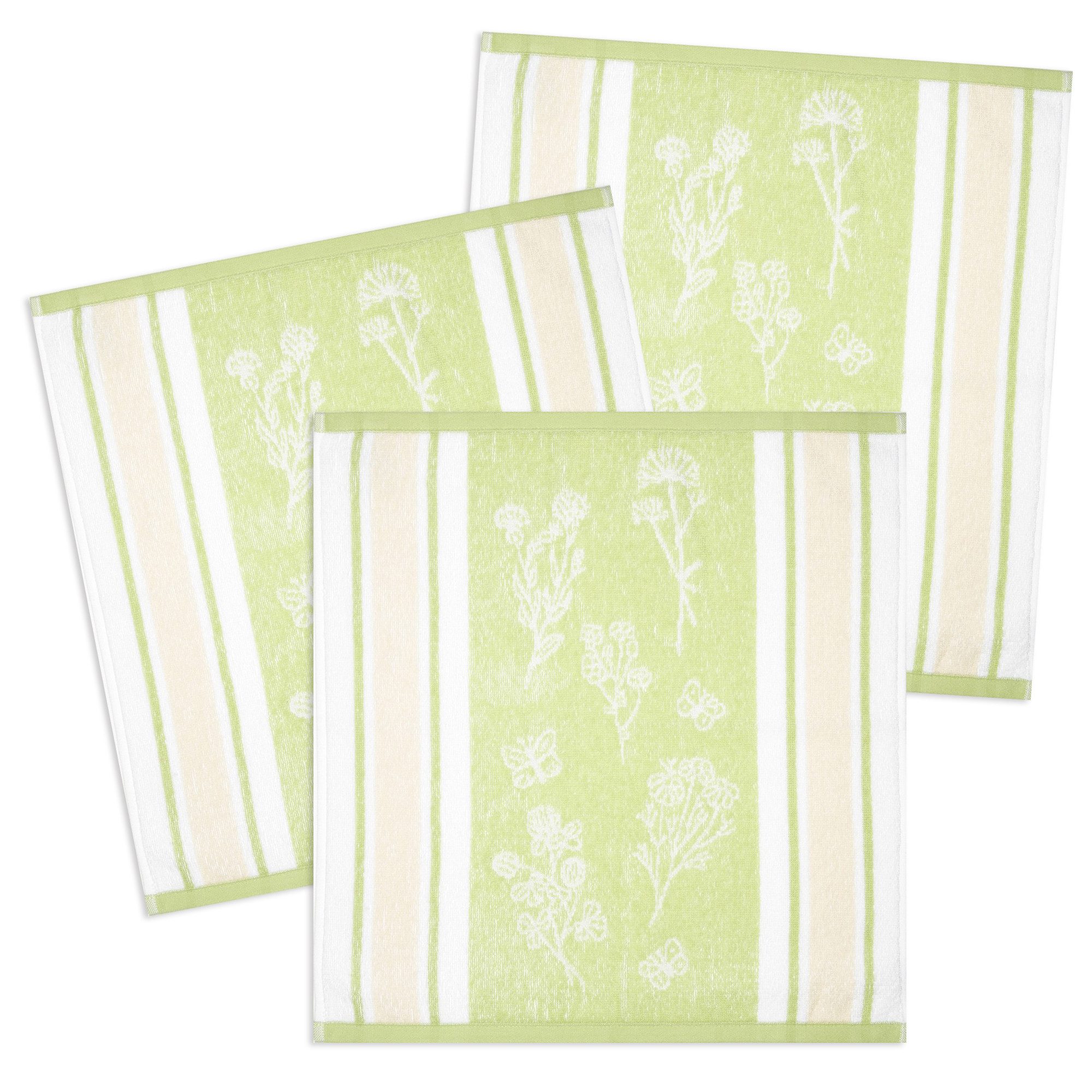 Küchenfrottier, die unverzichtbare Ergänzung zu jeder Küchentuchserie. In Jacquard-Webqualität und abgestimmt zu den Halbleinen-Küchentüchern ergänzen sich die Frottiertücher zusammen mit passenden Topflappen zu einem abgestimmten Küchenset. Diese Baumwollqualität ist sehr strapazierfähig, saugstark und bügelfrei und in der praktischen Размер 50/50 cm.