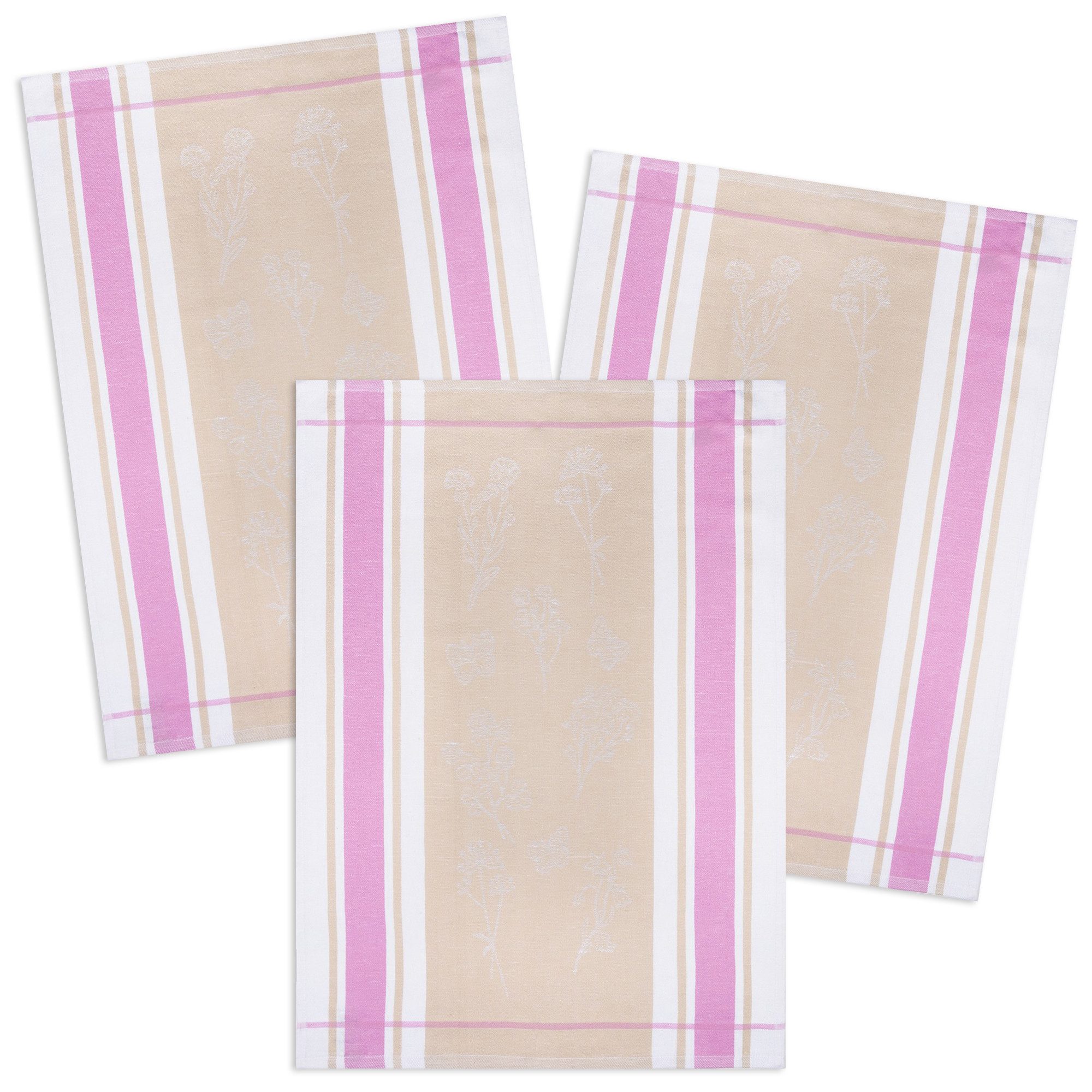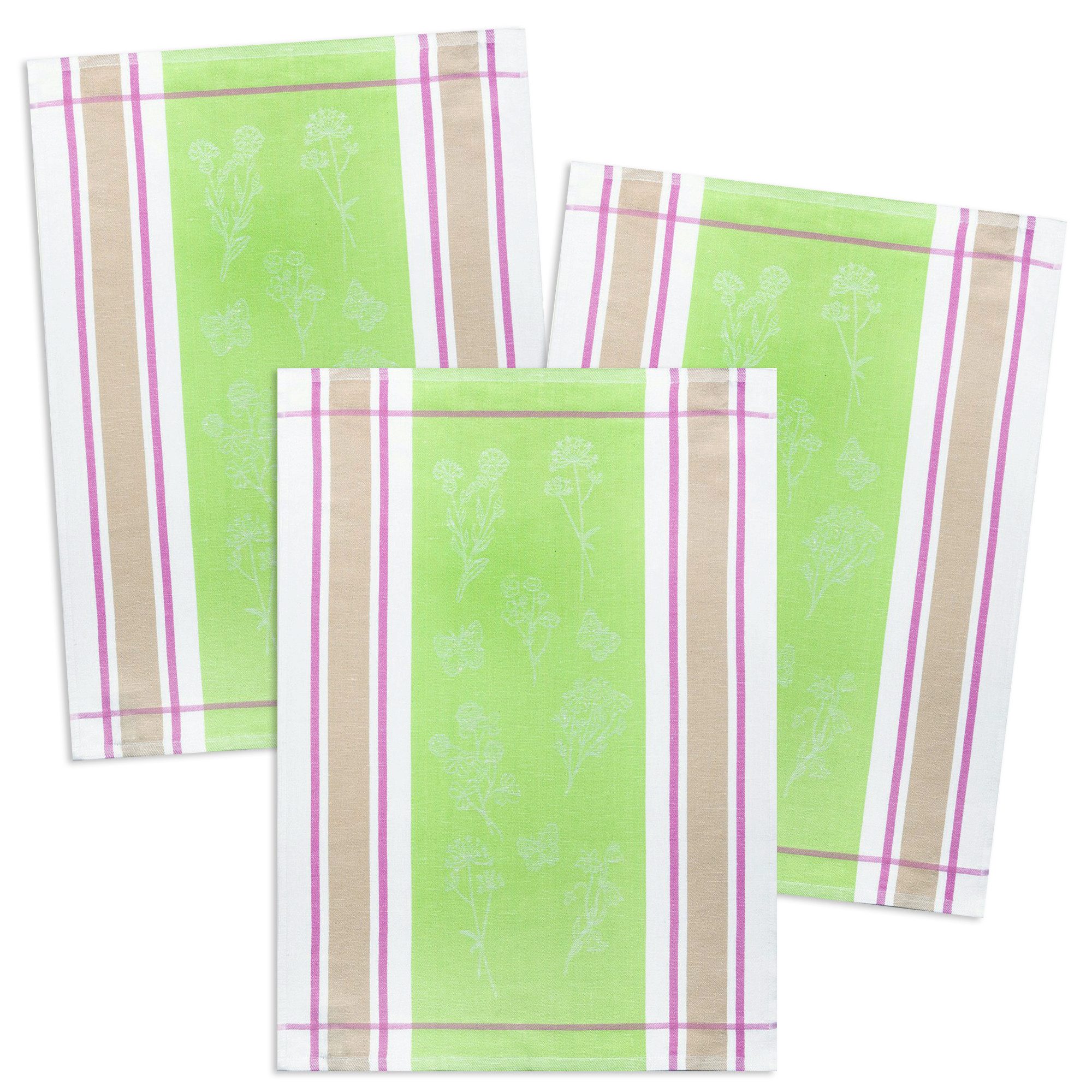 Halbleinen Jacquardtücher in einer 3er-Packung mit schönen Dessins und farblich abgestimmt. Mit eingewebten Ornamenten, Mustern und Motiven sind sie ein Blickfang in der Küche. Die Kombination der Materialien Baumwolle und Leinen bietet eine hervorragende Trocknungs- und Poliereigenschaft für Geschirr, Besteck und Gläser. Baumwolle für eine gute Saugfähigkeit und Leinen für Robustheit und Strapazierfähigkeit.