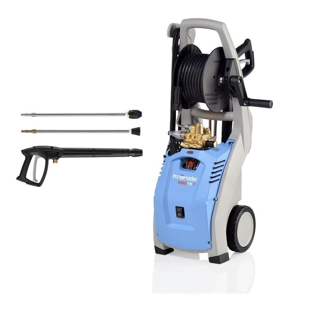 Lieferumfang | - Kränzle Hochdruckreiniger K1050 TST - Hochdruckschlauch 12 Meter auf Schlauchtrommel - Sicherheits-Abschaltpistole mit Schnellwechselsystem - Schmutzkillerlanze mit Edelstahlrohr - Jet-Lanze mit Edelstahlrohr mit Schnellwechselsystem |