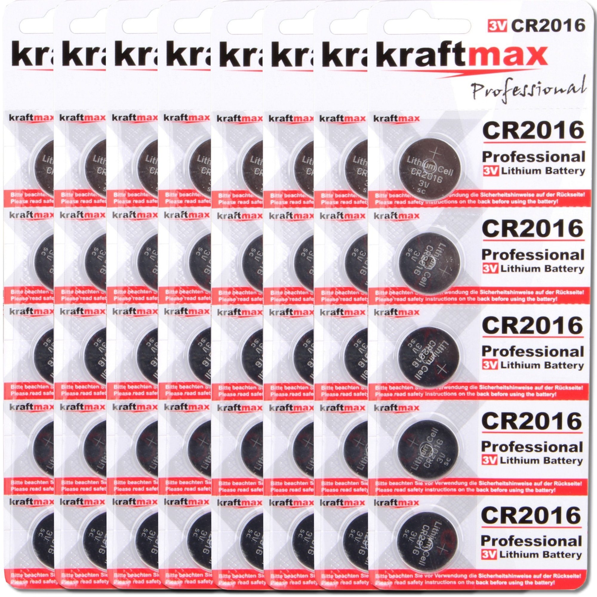 kraftmax 40er Pack CR2016 Lithium Hochleistungs- Batterie / 3V Knopfzelle Knopfzelle, (1 St)