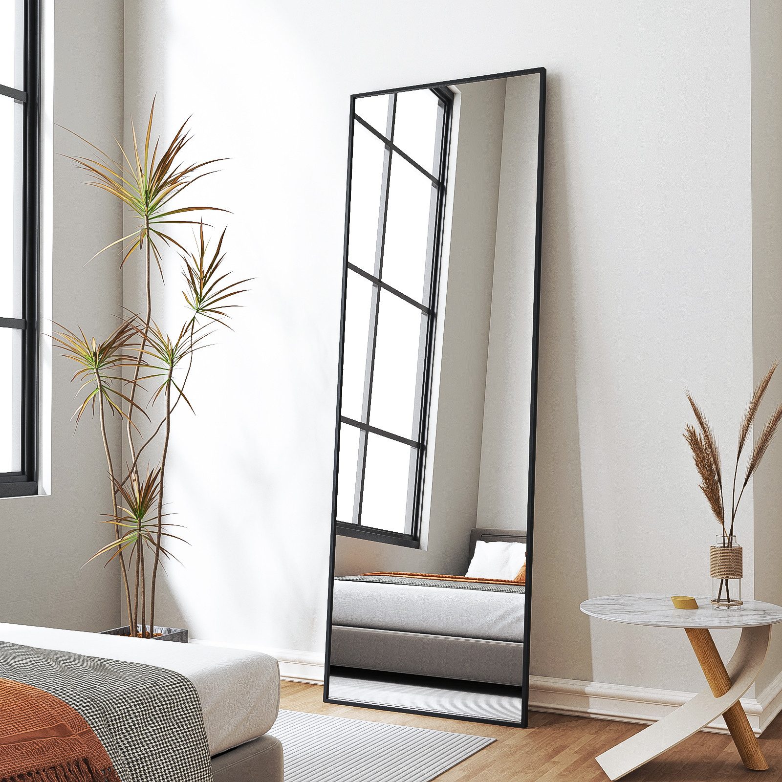 KreaGo Ganzkörperspiegel Eckig Schwarz mit Aluminiumrahmen 5mm Glas