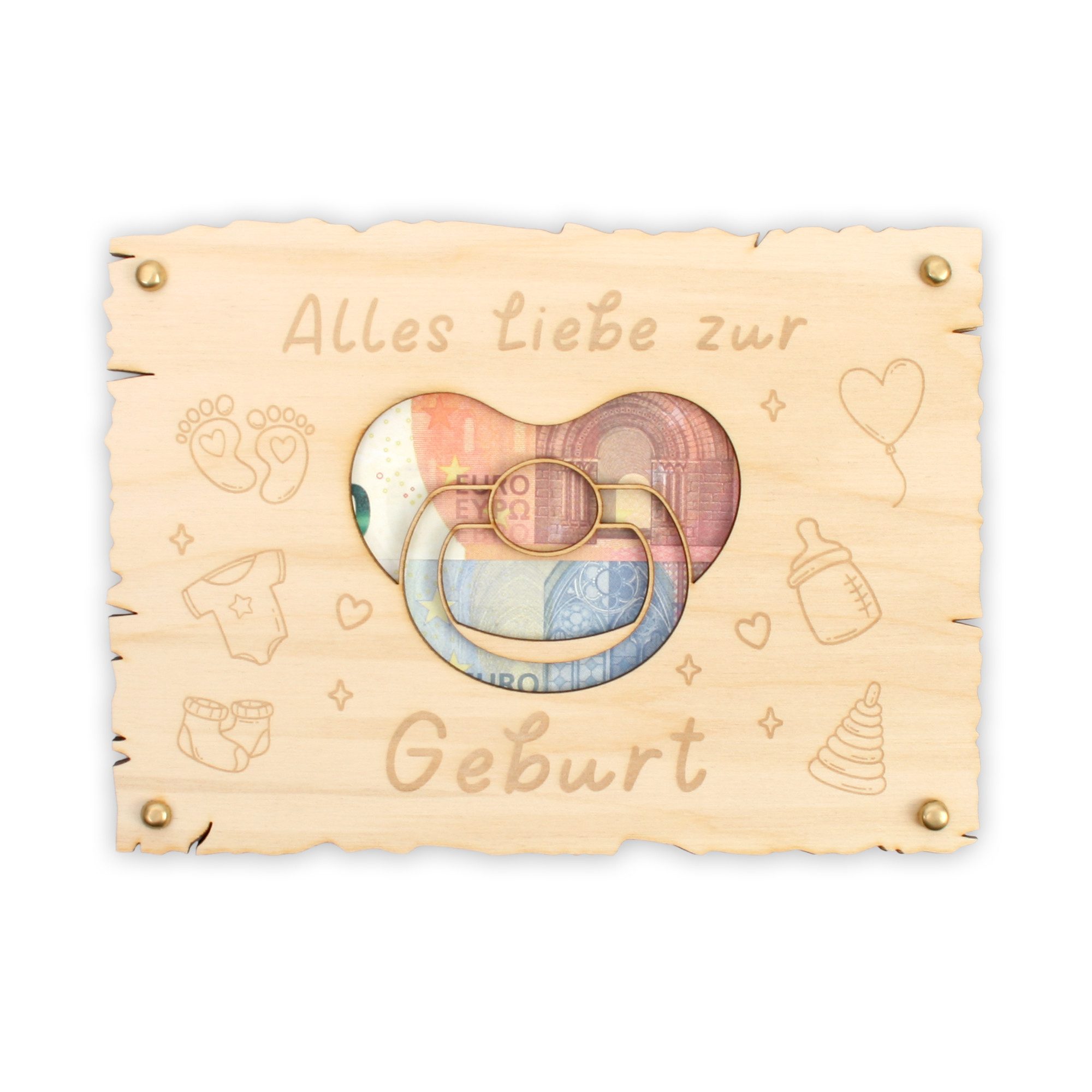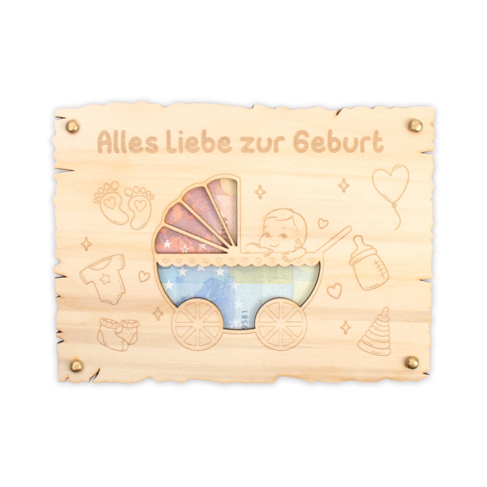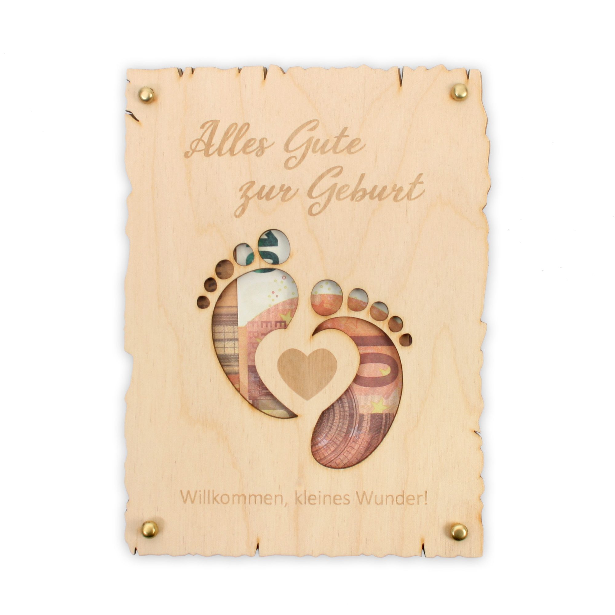 Das Zusammenbauen macht viel Spaß und ist im Handumdrehen erledigt. Einfach den gewünschten Inhalt (Geldschein, Gutschein oder auch andere Grußbotschaften) zwischen den beiden Holzplatten platzieren und ggf. fixieren.