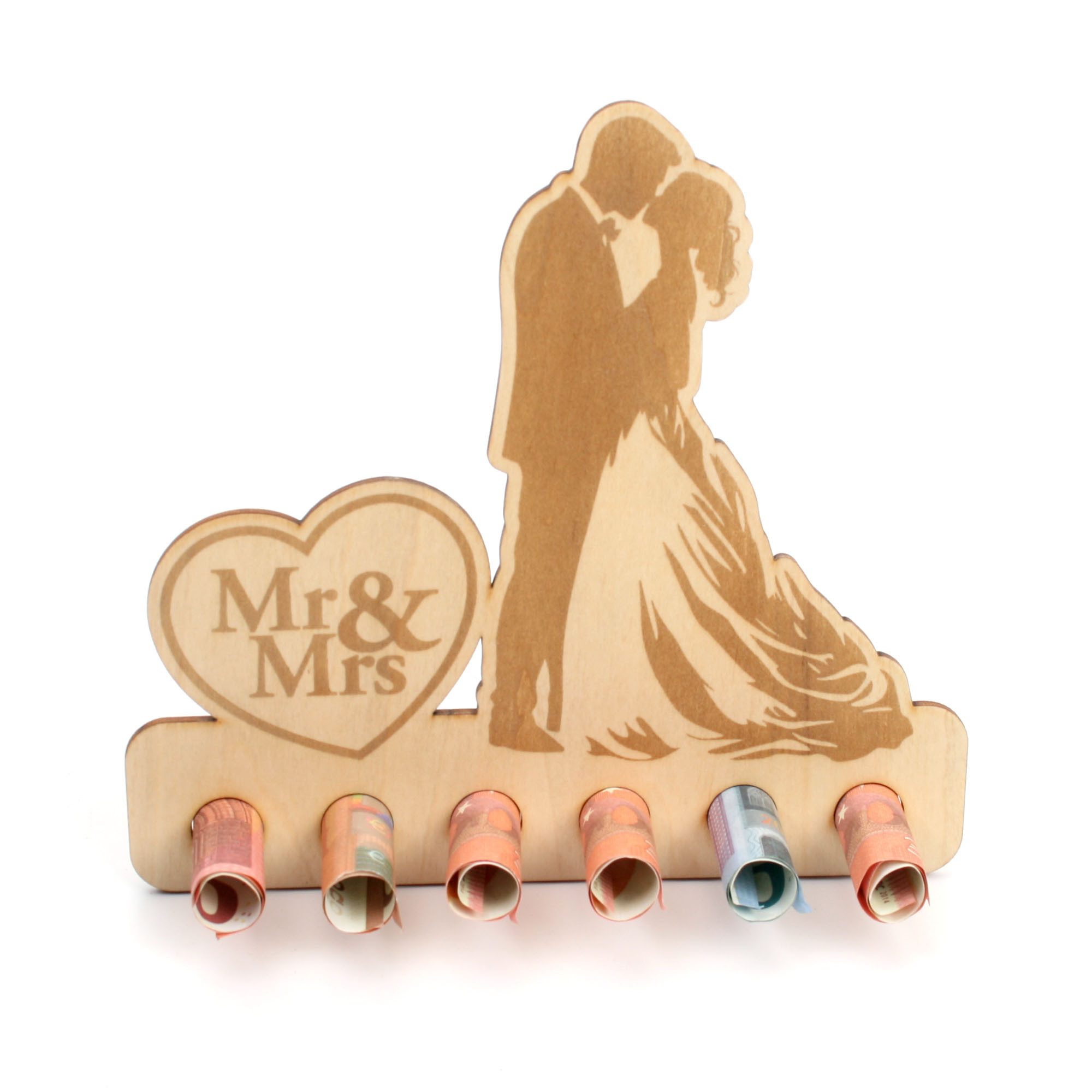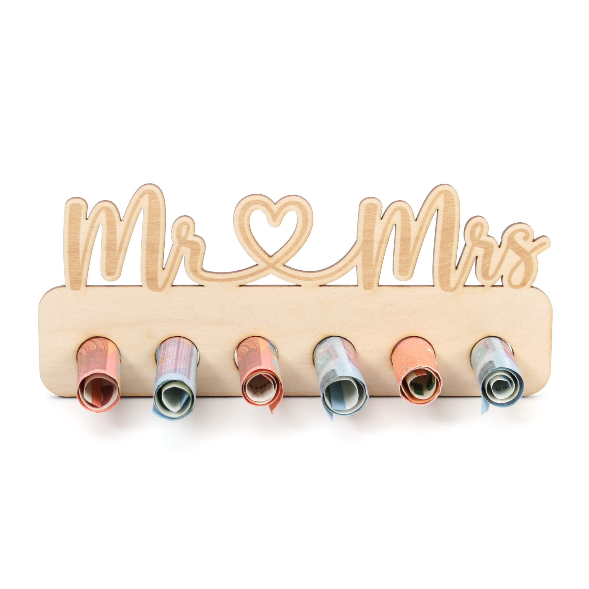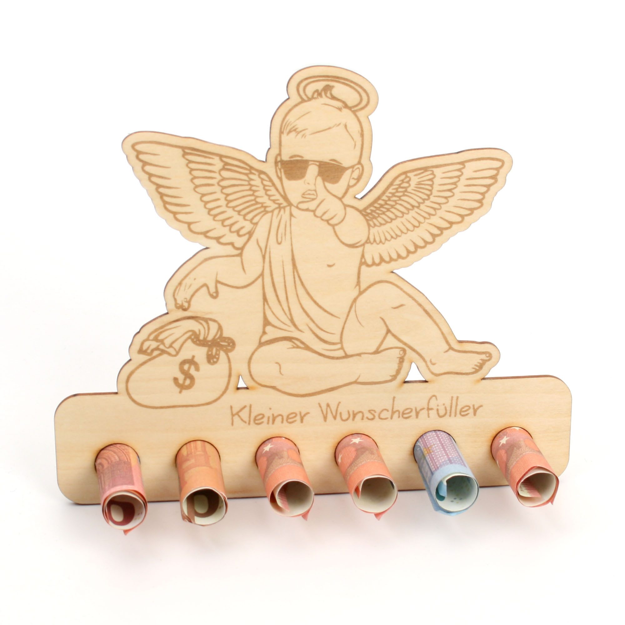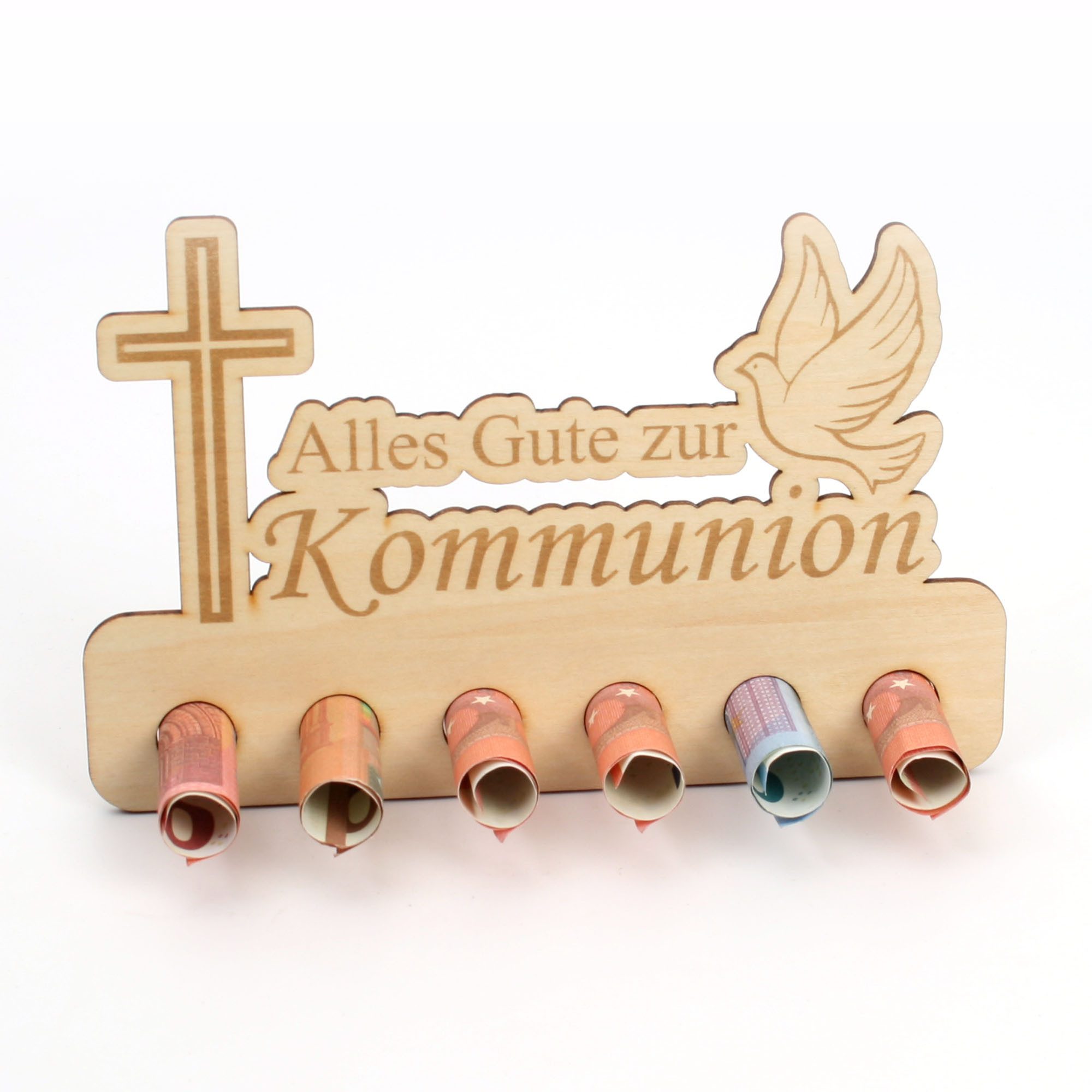 Geldscheine einfach einrollen und in die vorgesehenen Löcher stecken. Vorder - und Rückseite können ganz nach Belieben noch beschrieben oder dekoriert werden.