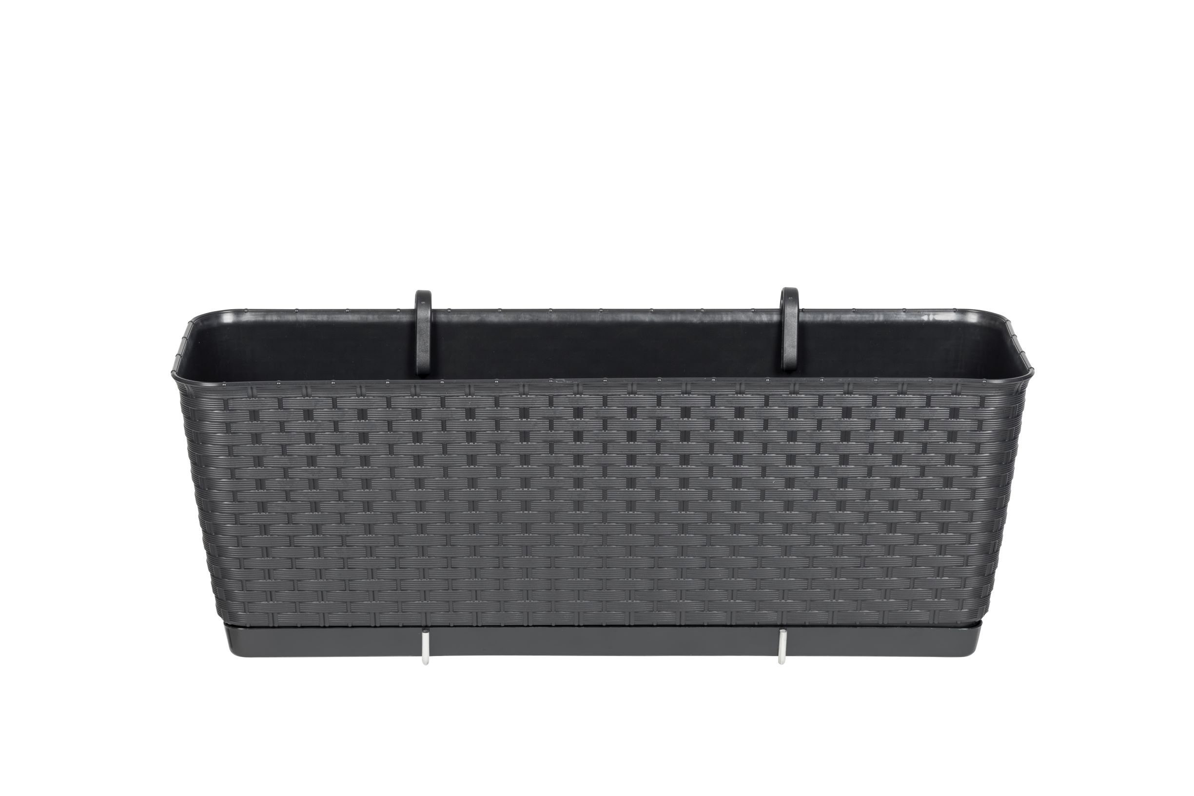 ALLE INFOS - 1 Stück Balkonkasten | In Rattan-Optik | In Anthrazit | Mit Metallaufhängung | Inkl. Wasserspeicher | Aus Kunststoff | Maße BxTxH: 50 x 17,2 x 17,4 cm | Abwaschbar