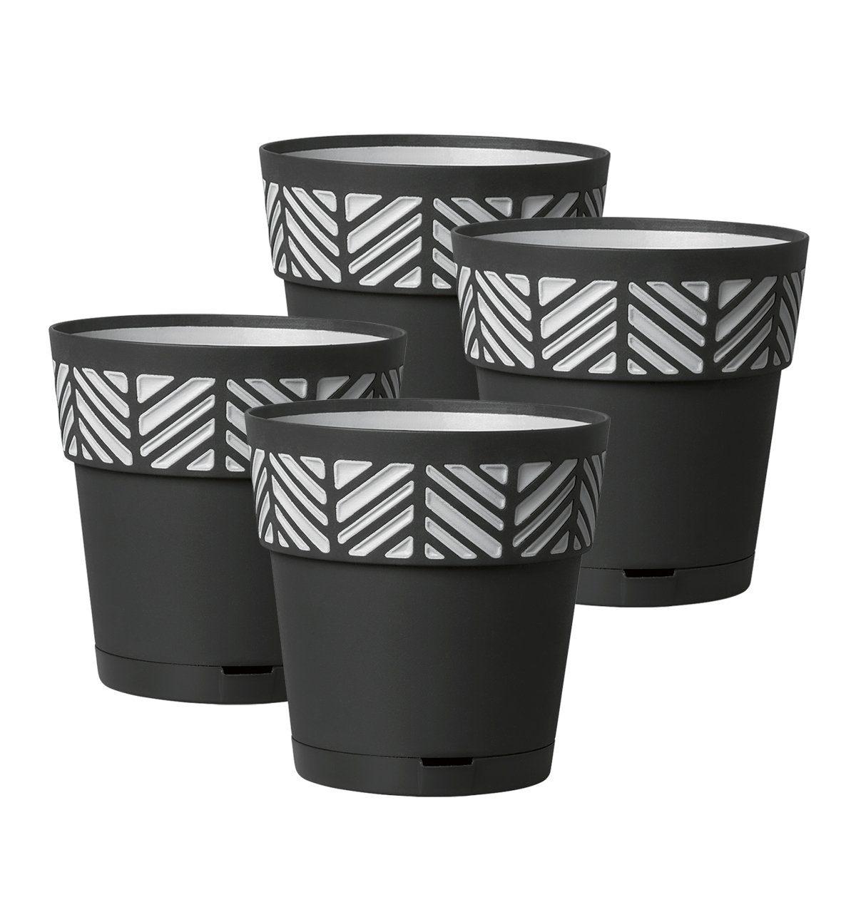 Bringen Sie frische Farbe und hochwertiges Design in Ihren Haushalt mit diesen robusten und formschönen Pflanztöpfen der "ORFEO"-Serie. Mit diesem Angebot erhalten Sie insgesamt vier Töpfe in gleicher Größenausführung. Der Topf hat einen Durchmesser von 20 cm und eignet sich ganz prima als Blumentopf. Elegante Farben, die mit Licht und Schatten spielen: Das ist die neue Ästhetik, die diese Kollektion auszeichnet. Aufgrund der soliden Verarbeitung lassen sich diese Töpfe dabei sowohl Indoor als auch Outdoor einsetzen und passen ebenso gut zu den neuen Balkonpflanzkästen aus gleichnamiger Serie. In der Farbkombination wirken die Töpfe äußerst edel und setzen ein tolles, farbliches Highlight - auch in eher dezent gehaltenen Räumen. Das Matte-Finish ist ebenso dezent und wirkt edel und wertig. Schauen Sie sich dazu gern die atmosphärischen Bilder an und lassen Sie sich inspirieren von dieser hochwertig und dennoch preiswertigen Serie an Pflanz- und Übertöpfen.