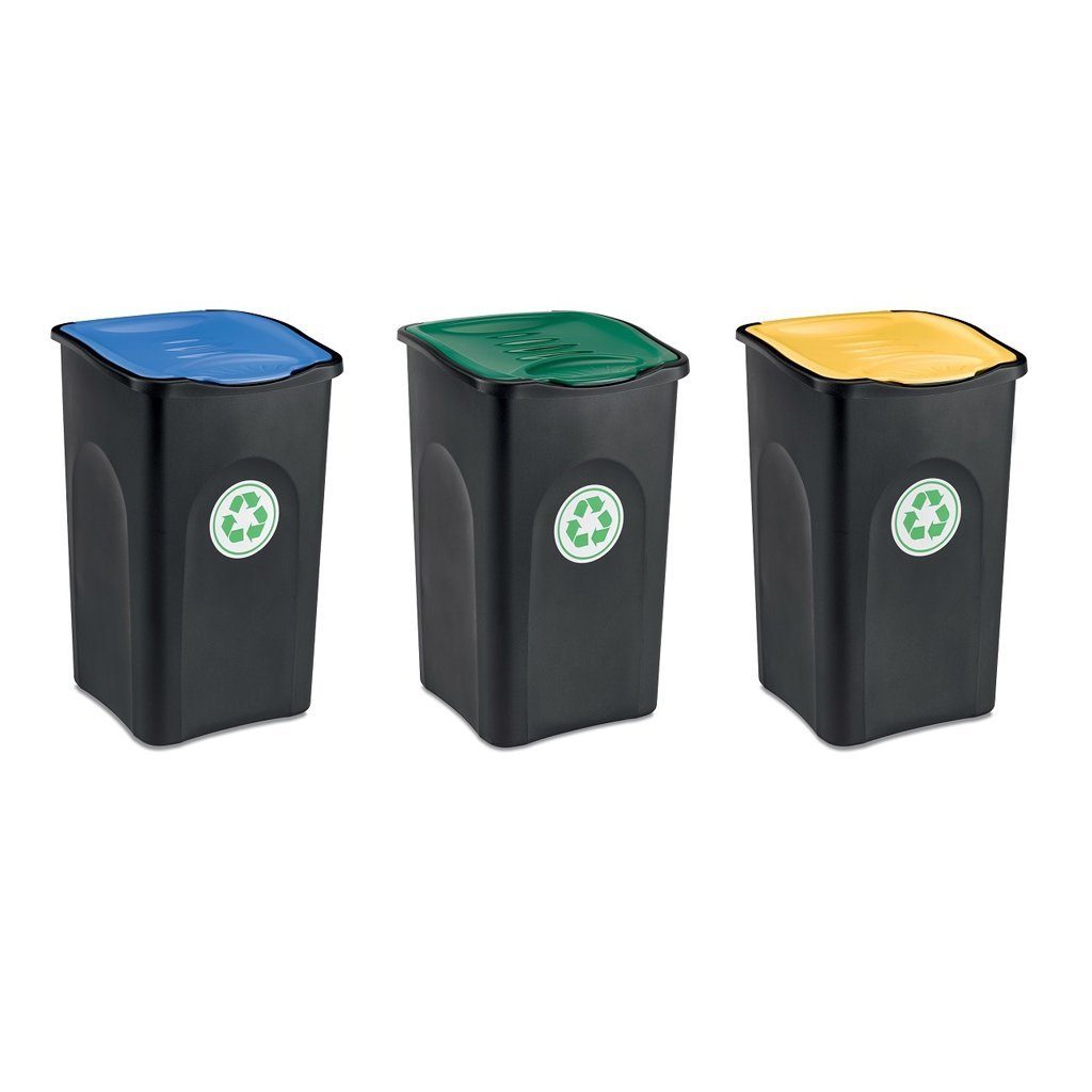 ALLE INFO'S ZUM ARTIKEL - 3 x Abfalleimer 50 Liter | Mit Klappedeckel in Grün, Gelb und Blau | Maße (BxTxH): 37 x 37 x 56 cm | Abwaschbar und leicht zu reinigen