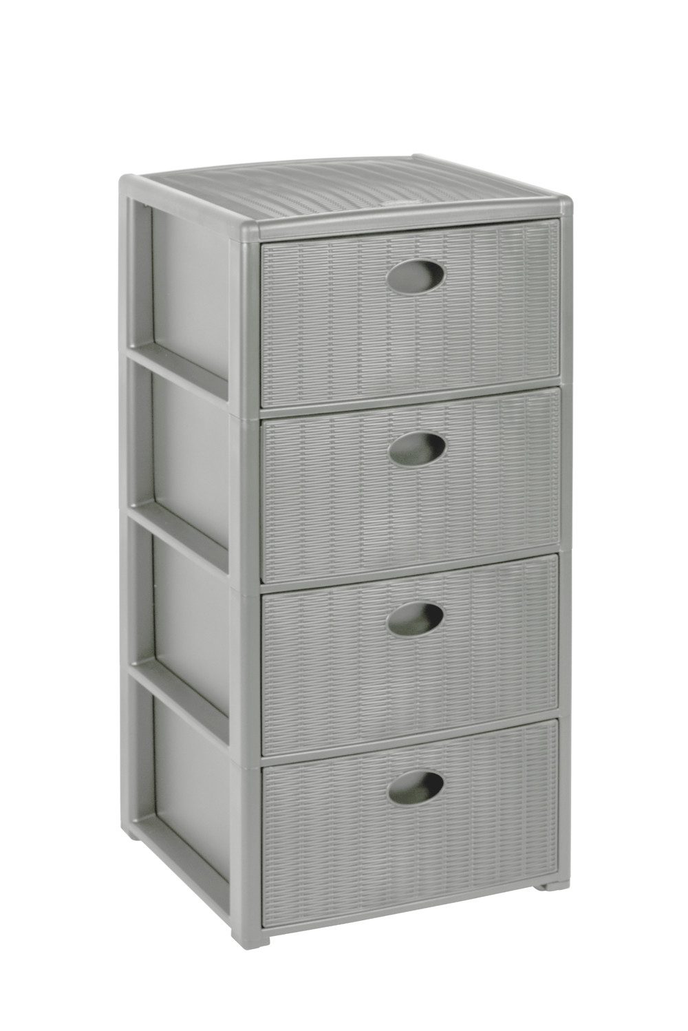ALLE INFO'S - Kreher Schubladentower | Rattan Design | 4 Schübe | In Grau | Maße (BxTxH): 40 x 40 x 81 cm | Maße Schublade (innen): 33 x 33,5 x 18 cm | Mit Rollen | Abwaschbar