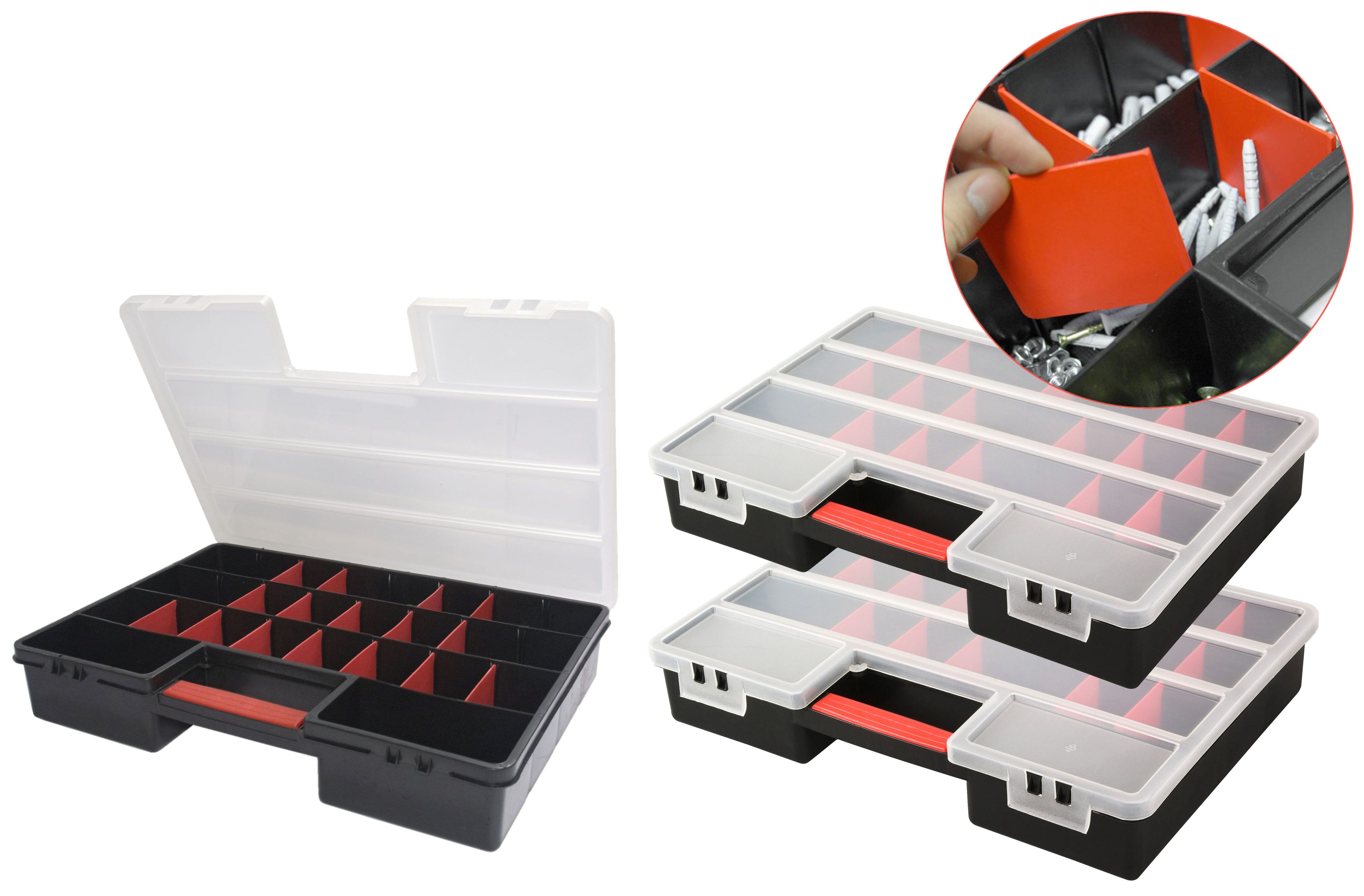 FLEXIBLE AUFTEILUNG – 21 variable Trennwände ermöglichen bis zu 24 individuell anpassbare Fächer + 2 fixe Fächer. Perfekt für Schrauben, Dübel, Elektronikи больше.