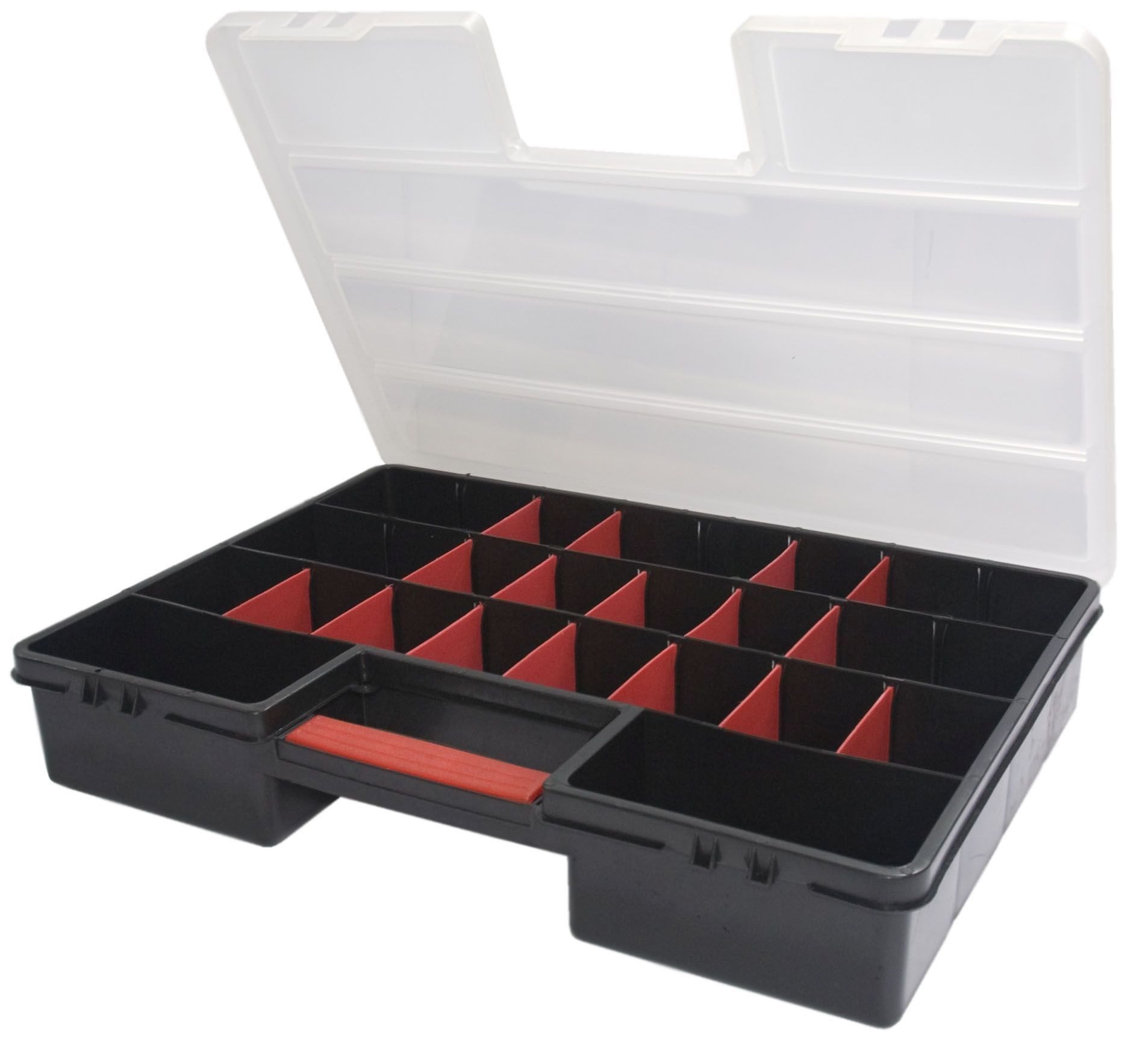 FLEXIBLE AUFTEILUNG – 21 variable Trennwände ermöglichen bis zu 24 individuell anpassbare Fächer + 2 fixe Fächer. Perfekt für Schrauben, Dübel, Elektronikи больше.