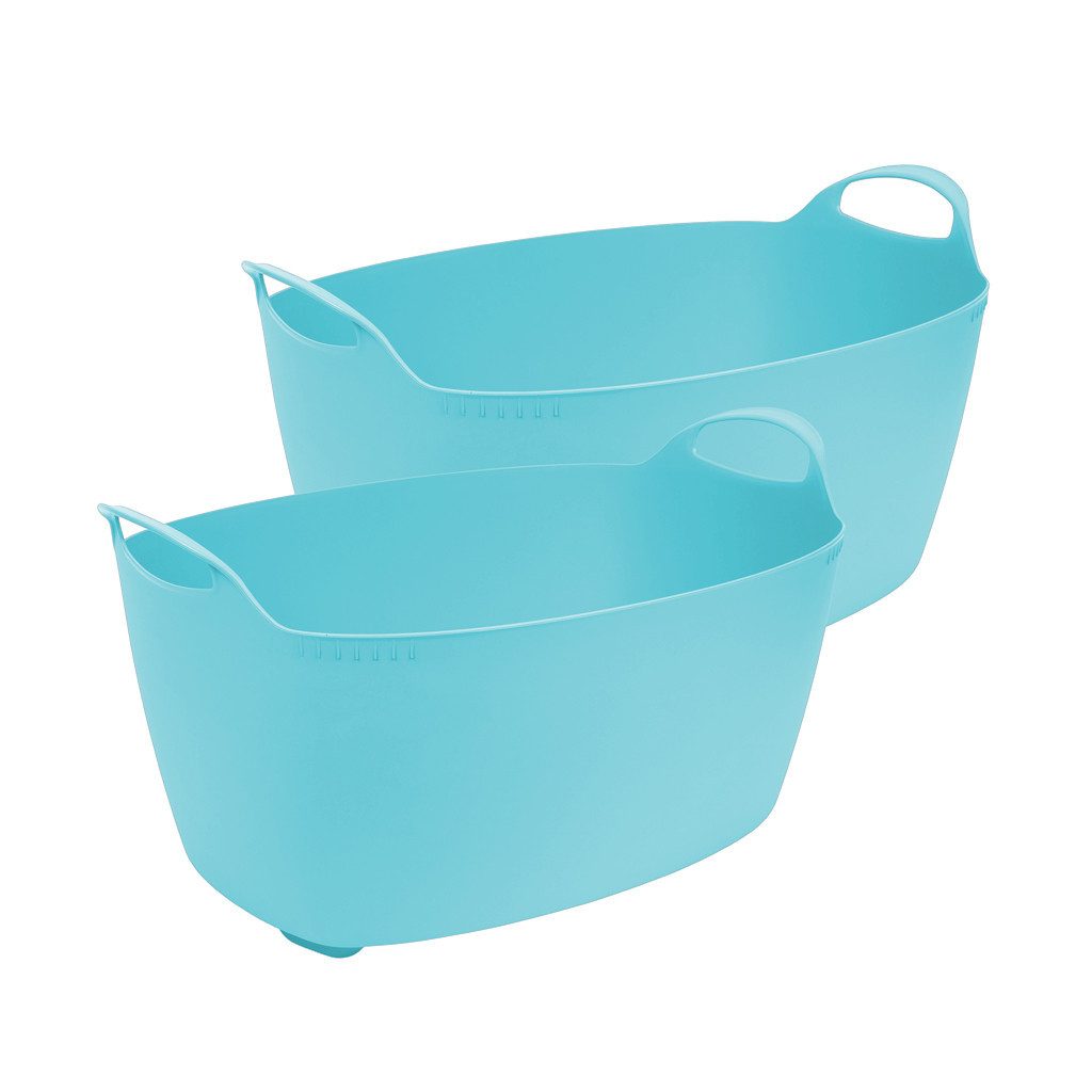 PREISWERT & MULTIFUNKTIONAL - Erhalten Sie zwei Wäschewannen mit 35 L Fassungsvermögen. Die Maße (Ø x H) betragen 57x42x24 cm außen und 54x42x23 cm innen. Gewicht: 1 kg