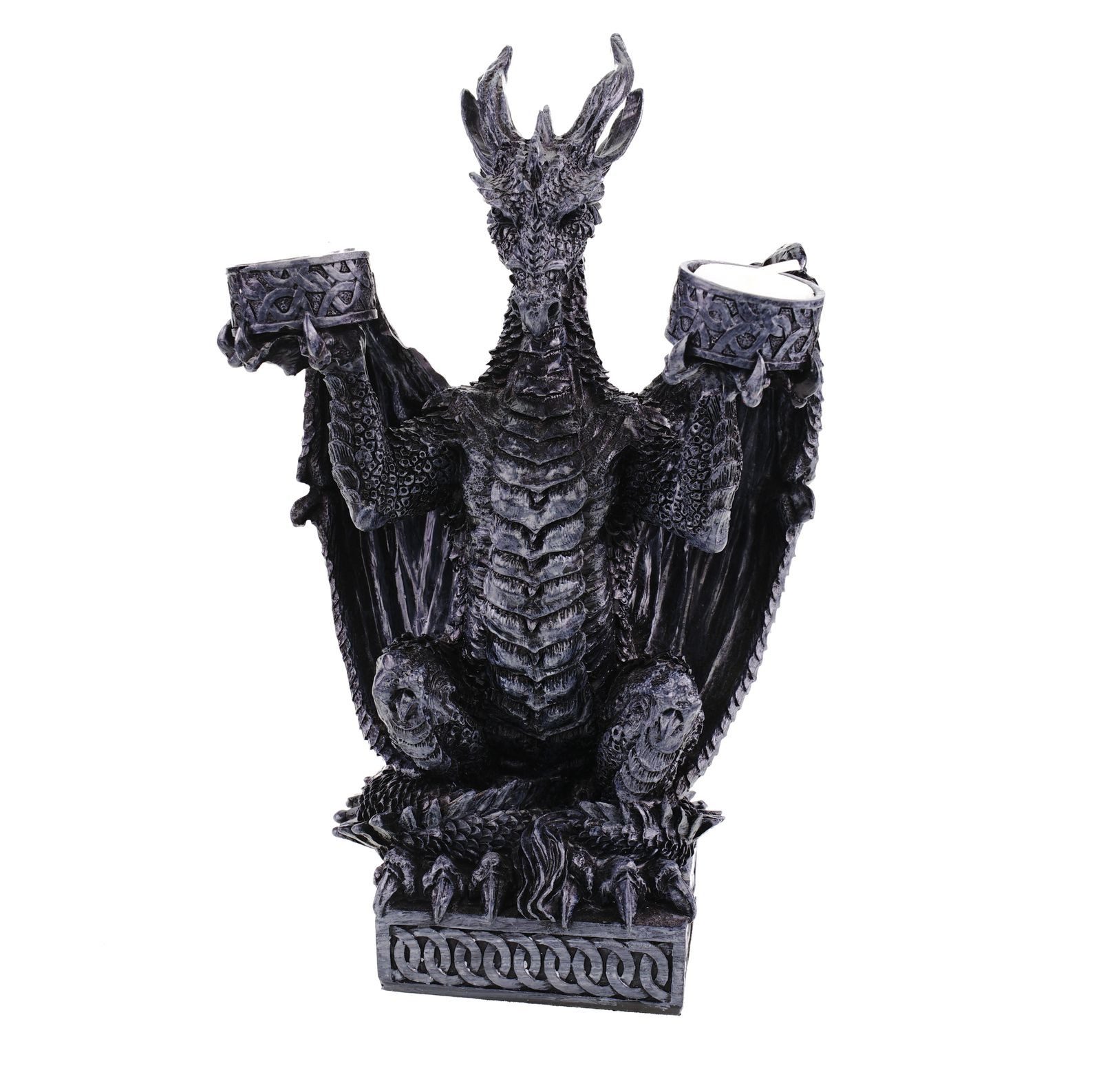 Tauchen Sie ein in die Welt der Fantasie mit dem "Kremers Schatzkiste Drachen-Kerzenhalter". Dieser detailreiche Kerzenhalter für 2 Kerzen und seinem mystischen Design verleiht jeden Raum in eine magische Atmosphäre. Der majestätische Drachenkerzenhalter aus hochwertigem Polyresin ist nicht nur ein Kerzenhalter sondern auch ein tolles Dekoobjekt mit seinen vielen feinen Verzierungen und einer faszinierenden Struktur.