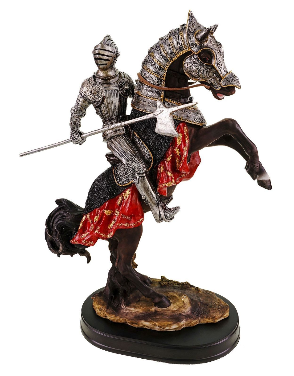 Erwecken Sie die Vergangenheit zum Leben mit unserer beeindruckenden XXL Ritterfigur auf Pferd. Jedes Element dieser Statue wurde handbemalt, um die Essenz des Mittelalters einzufangen. Die Verwendung von hochwertigem Polyresin verspricht nicht nur eine detailreiche Darstellung, sondern auch eine bemerkenswerte Langlebigkeit. Diese Figur ( 41 x 36 x 16 cm ) ist nicht nur ein Blickfang in jedem Raum, sondern auch ein Schatz für Sammler historischer Artefakte. Ob als Geschenk für einen geliebten Menschen oder als Teil Ihrer eigenen Sammlung, dieser Ritter auf seinem Streitross ist eine Hommage an die Ritterlichkeit und den Geist einer vergangenen Ära.