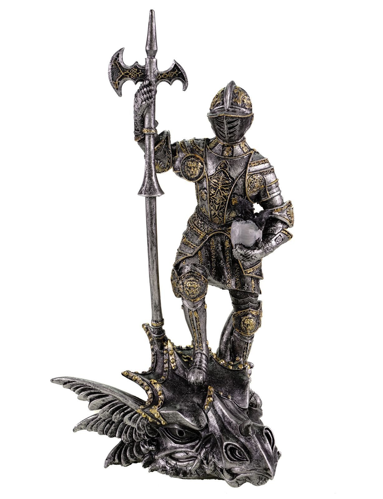 Erwecken Sie die Vergangenheit zum Leben mit unserer beeindruckenden XXL Ritter stehend auf Drachen. Jedes Element dieser Statue wurde handbemalt, um die Essenz des Mittelalters einzufangen. Die Verwendung von hochwertigem Polyresin verspricht nicht nur eine detailreiche Darstellung, sondern auch eine bemerkenswerte Langlebigkeit. Diese Figur ( 37 x 23 x 22 cm ) ist nicht nur ein Blickfang in jedem Raum, sondern auch ein Schatz für Sammler historischer Artefakte. Ob als Geschenk für einen geliebten Menschen oder als Teil Ihrer eigenen Sammlung, dieser Ritter auf seinem Streitross ist eine Hommage an die Ritterlichkeit und den Geist einer vergangenen Ära.