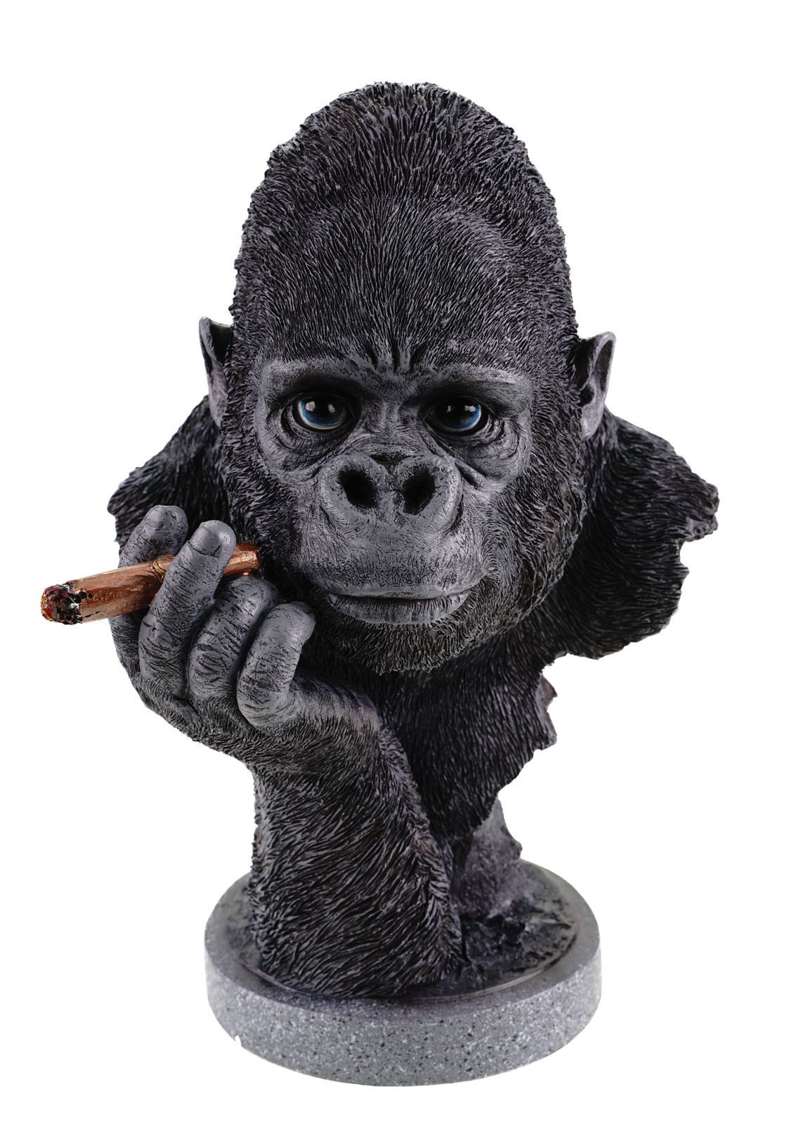 Die XXL Gorillabüste Dekofigur mit Zigarre von Kremers Schatzkiste ist ein absoluter Blickfang und Hingucker für jeden Raum. Die detailgetreue Darstellung eines Gorillas mit Zigarre im Mund in naturgetreuer Darstellung macht richtig was her. Die Büste aus hochwertigem Polyresin ist handbemalt und ideal für den Innenbereich wie Wohnzimmer, Büro, Wintergarten oder Empfangsbereich geeignet. Mit den imposanten Maßen von H/B/T ca. 35 x 25 x 29 cm und einem Sockeldurchmesser von 18 x 18 cm verleiht sie jedem Ambiente einen kraftvollen, markanten und natürlichen Akzent. Diese ausgefallene Affenfigur ist ein edles Sammlerstück für Gorilla-Fans und leidenschaftliche Sammler von Skulpturen und Tierfiguren. Sie macht sich hervorragend als einzigartiges und edles Geschenk für viele Anlässe wie Geburtstage, Jubiläen, Firmengründungen oder als Dankeschön für Geschäftspartner. Die naturgetreue XXL Gorillabüste von Kremers Schatzkiste ist ein dekoratives Highlight für Wohnzimmer, Büro, Wintergarten oder Empfangsbereich und verleiht jedem Ambiente einen besonderen Charme.