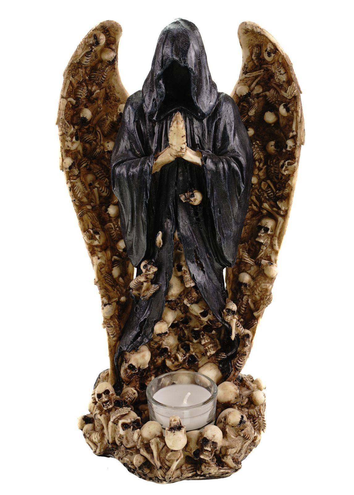 Schaffen Sie eine unheimliche und faszinierende Atmosphäre mit diesem großartigen Todesengel Teelichthalter. Aus hochwertigem Polyresin gefertigt, besticht dieser Teelichthalter durch seine detaillierte Gestaltung und seine lebendigen Farben. Der gläserne Teelichteinsatz sorgt nicht nur für eine sichere Nutzung, sondern ermöglicht auch ein einfaches Anzünden und Austauschen der Teelichter. Mit einer Höhe von 28 cm ist dieser Teelichthalter ein imposanter Blickfang, der jeden Raum in eine gruselige Szenerie verwandelt. Perfekt für Halloween, Gothic-Partys oder als einzigartiges Dekorationsstück für das ganze Jahr. Verleihen Sie Ihrem Zuhause mit diesem Todesengel Teelichthalter eine mysteriöse und einzigartige Note.
