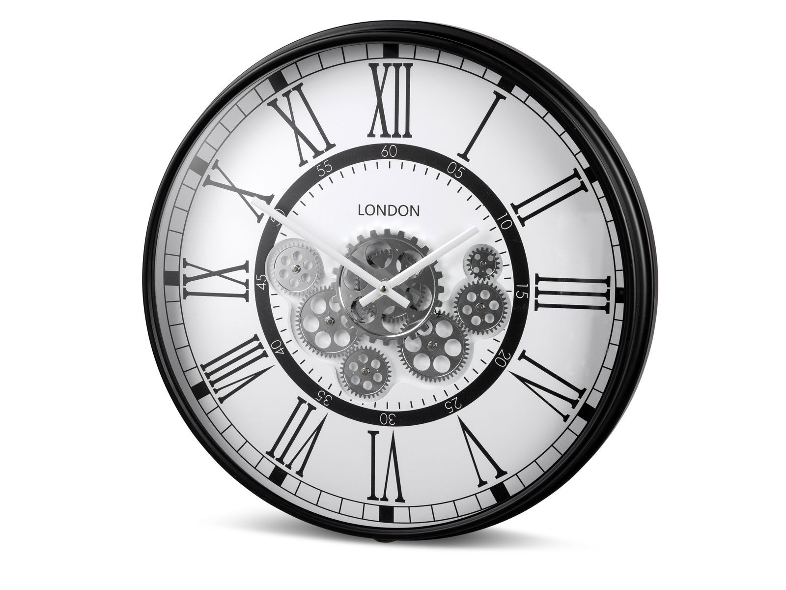 Die Wanduhr London kombiniert innovatives Design mit funktionaler Präzision. Mit einem beeindruckenden Durchmesser von 54cm und sichtbar beweglichen, drehenden Zahnrädern wird sie zum Blickfang in jedem Raum. Die hochwertige Verarbeitung aus Metall in Silber-Weiß-Schwarz verleiht der Uhr Langlebigkeit und zeitlose Eleganz.