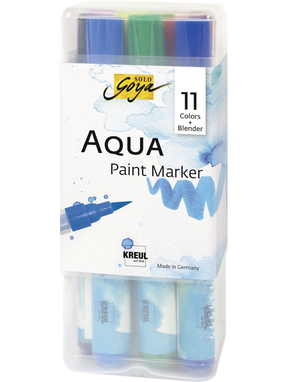 Das SOLO GOYA Aqua Paint Marker Powerpack enthält eine kompakte Zusammenstellung von 11 Farbtönen + Blender und ist der perfekte Begleiter für das Zeichnen, Malen und Kolorieren unterwegs. Die Verpackung kann gleichzeitig als Wasserbehälter verwendet werden! Inhalt: 11 Stifte mit Künstlerpinselspitze in Zitron, Orange, Karmin, Magenta, Cyan, Kobaltblau, Gelbgrün, Permanentgrün, Oxydbraun dunkel, Hellgrau, Schwarz, 1 Blender