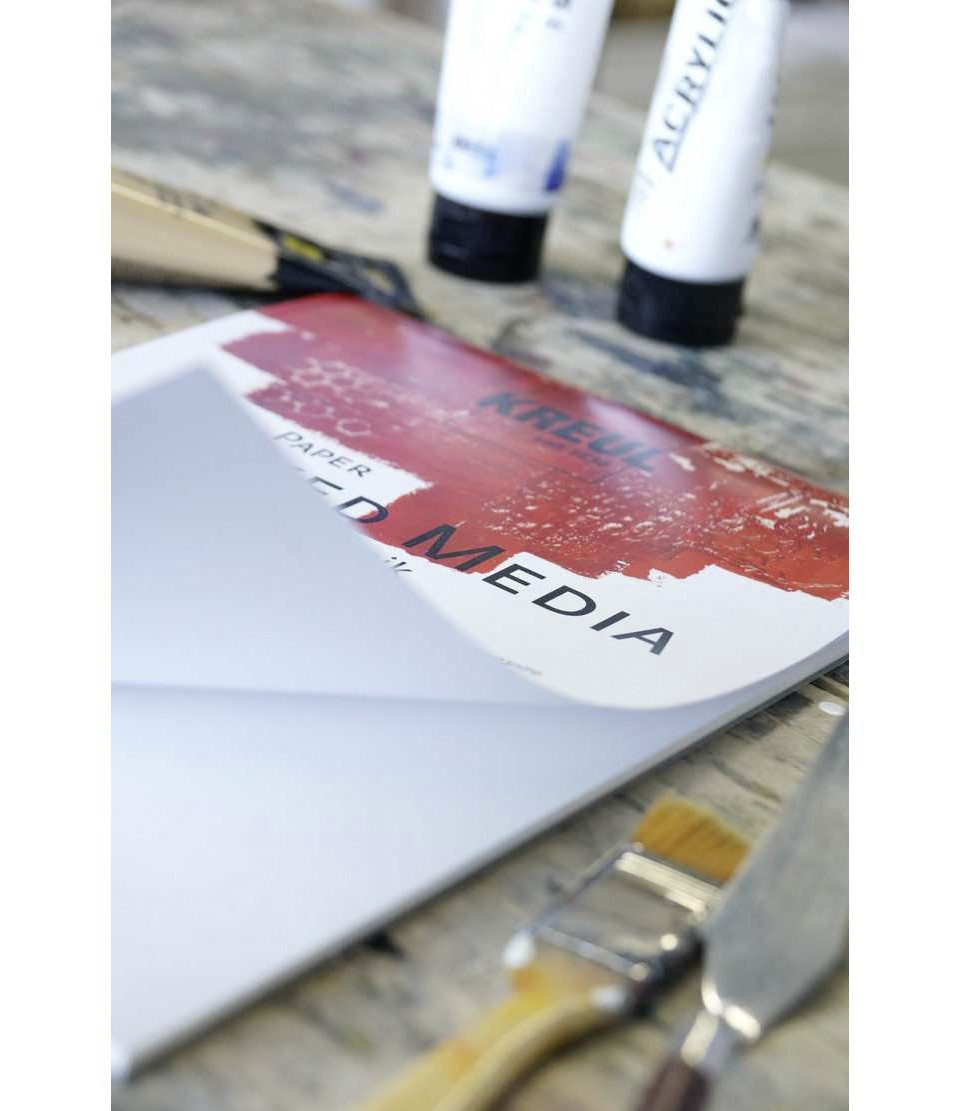 Die italienischen Künstlerpapiere aus dem Hause KREUL wurden passend zu den Farbsystemen ausgewählt. Vom Zeichenpapier für Skizzen bis hin zu den Papieren für die Malerei mit Aquarellfarben, mit Öl- und Acrylfarben und für die Anwendung von Mixed Media-Techniken entscheiden sich Künstler je nach Qualität für den passenden Bildträger: Die Künstlerpapiere KREUL Paper empfehlen sich hervorragend für Einsteiger, sie sind FSC®-zertifiziert (FSC® Mix)und werden umweltfreundlich hergestellt. KREUL Paper Mixed Media eignet sich für alle Mixed Media Fine Art Techniken, ob als Nass- oder Trockenmalanwendungen. Das hochwertige Künstlerpapier ist vierseitig geleimt, sodass nach dem Anfeuchten eine gute Flachlage gewährleistet ist und keine Wellen entstehen. Die Oberfläche ist glatt, satiniert und von hoher Festigkeit um einen intensiven Farbauftrag, hohe Konzentration an Feuchtigkeit und das Strapazieren durch mehrere Techniken zu gewährleisten. Es besteht aus einer Mischung aus 25% Baumwolle und ligninfreier Zellulose. Dieses qualitativ hochwertige Papier empfiehlt sich für Studenten und Einsteiger.
