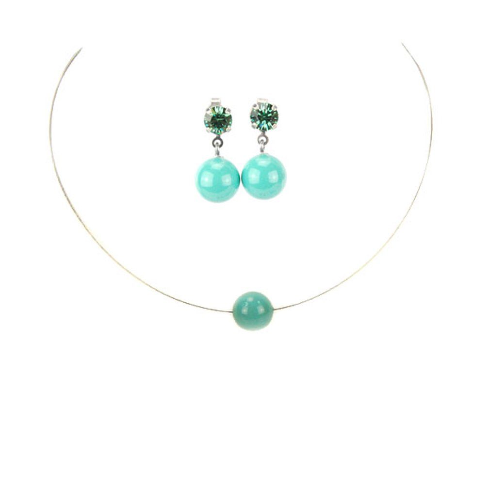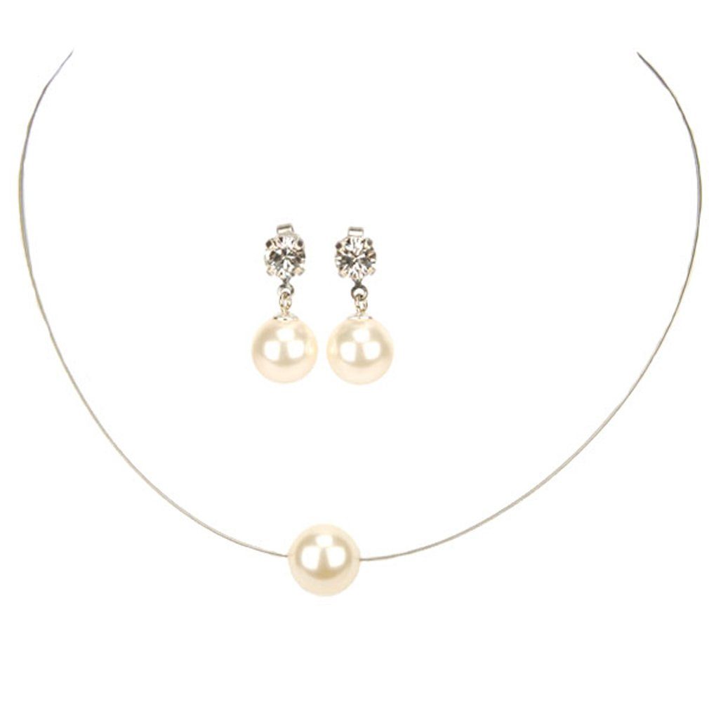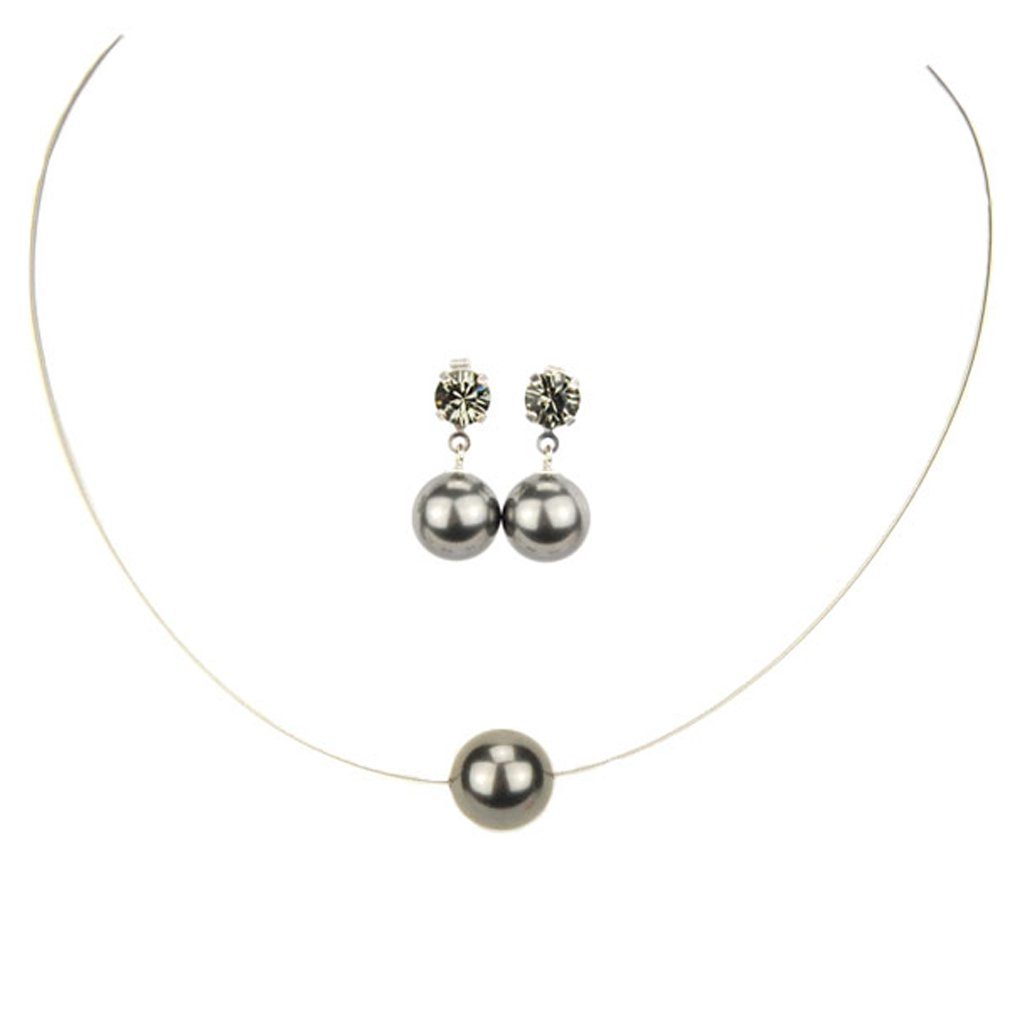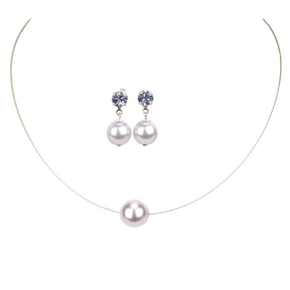 Besondere Merkmale | Edelstahl-Halsreif mit einer Perle + Perlen-Ohrstecker |