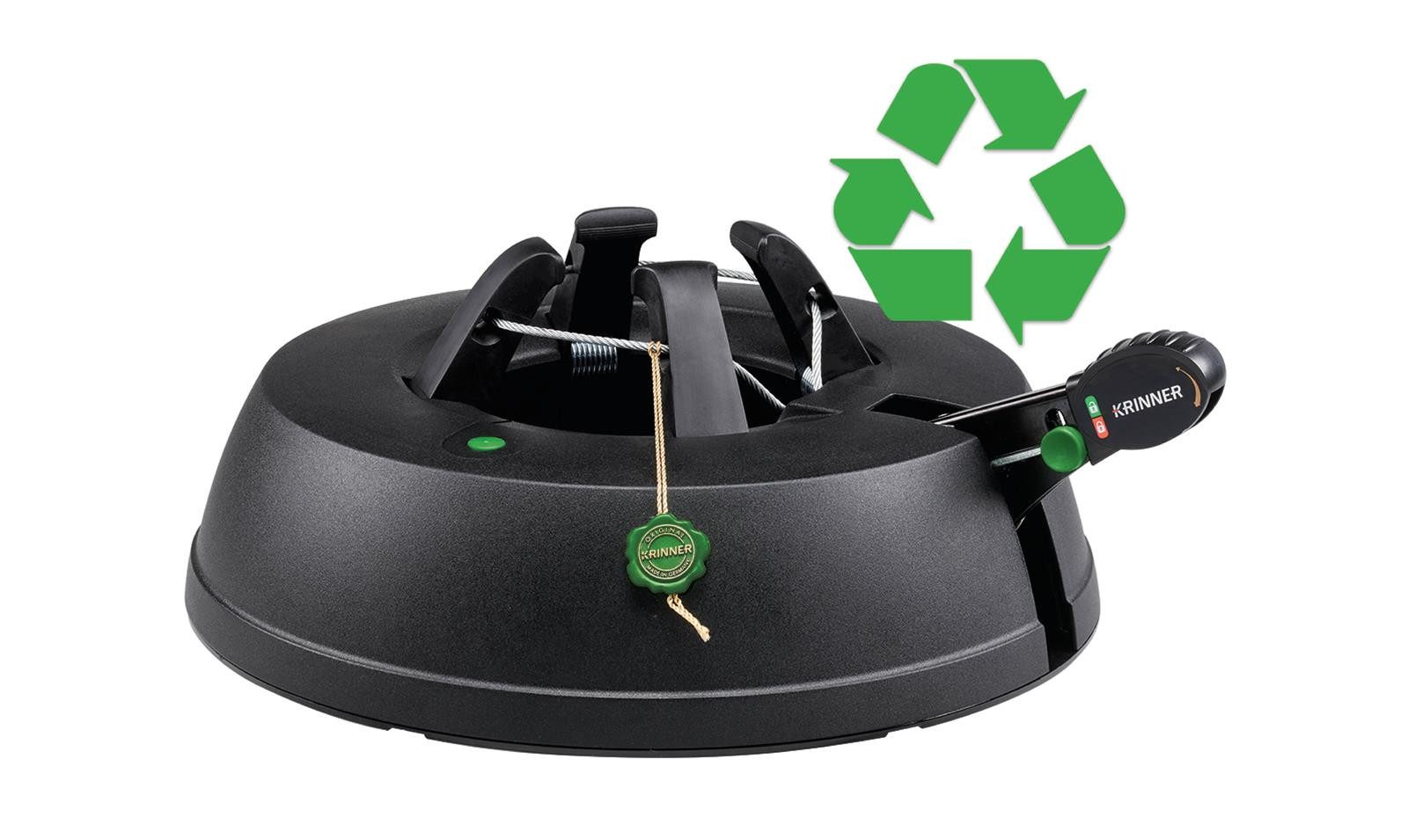 Die bayerische Erfinderschmiede von Klaus Krinner ist bekannt für ihre Innovationen. Zum 30-jährigen Firmenjubiläum ergänzt das Unternehmen sein attraktives Меню um den weltweit ersten Christbaumständer aus recyceltem Plastikmüll. Der neue KRINNER Green Line M wird nachhaltig und ressourcenschonend in Niederbayern hergestellt und trägt damit aktiv zum verantwortungsvollen Umgang mit unserer Umwelt bei. Der KRINNER Green Line M spiegelt damit unsere Überzeugung zu nachhaltigem Handeln und einer besseren Zukunft wieder. „Auf unsere Qualität Made in Germany sind wir stolz und für unsere Kunden ist dies ein ausschlaggebendes Marken-Qualitätsmerkmal. Die deutlich kurzen Transportwege durch unsere Produktion in Niederbayern verbessern zusätzlich die Ökobilanz“, so Klaus Krinner. KRINNER plant 2020 die Verarbeitung von über 200 Tonnen (!) Recycling Material. Dies entspricht rund 10 Millionen Plastikflaschen. Der Krinner Green Linke S ist ausgestattet mit der Original Rundum-Einseil-Technik. Die durchgehende Seilführung garantiert dabei den gleichmäßigen Druck der Klauen an den Stamm. Einfach den Baum in den Ständer stellen, das Fußpedal treten, fertig! Ob dick, dünn oder krumm gewachsen, der Baum steht sicher und kerzengerade. Zudem sorgt der patentierte Sicherheitsgurt durch seine schrittweise öffnende Mechanik für extra Sicherheit und verhindert ungewolltes Kippen.