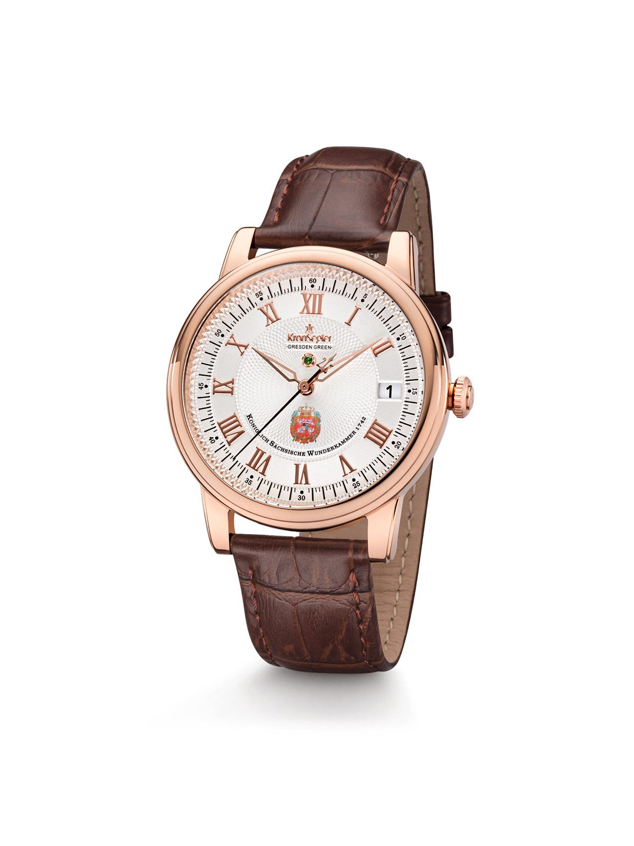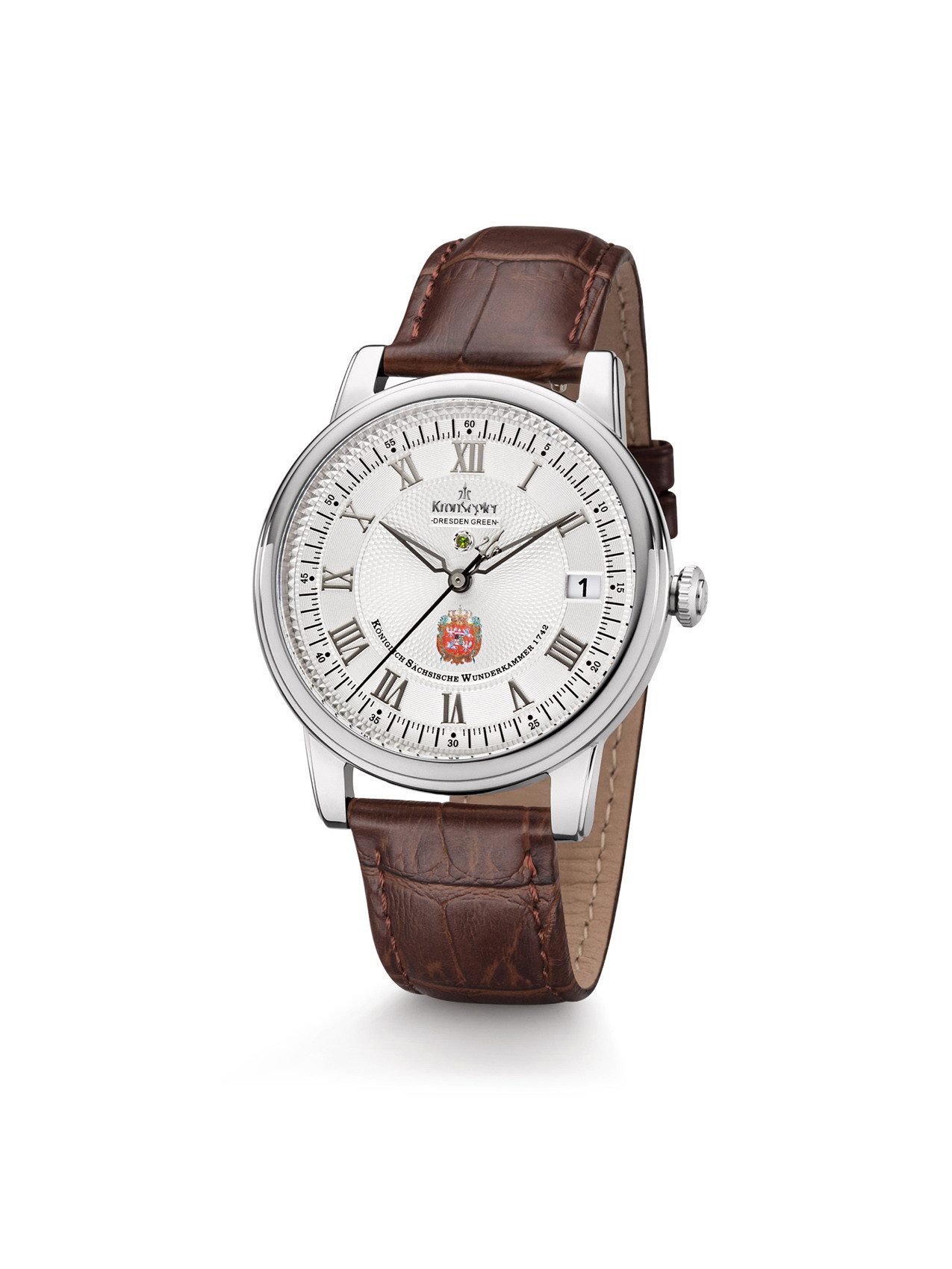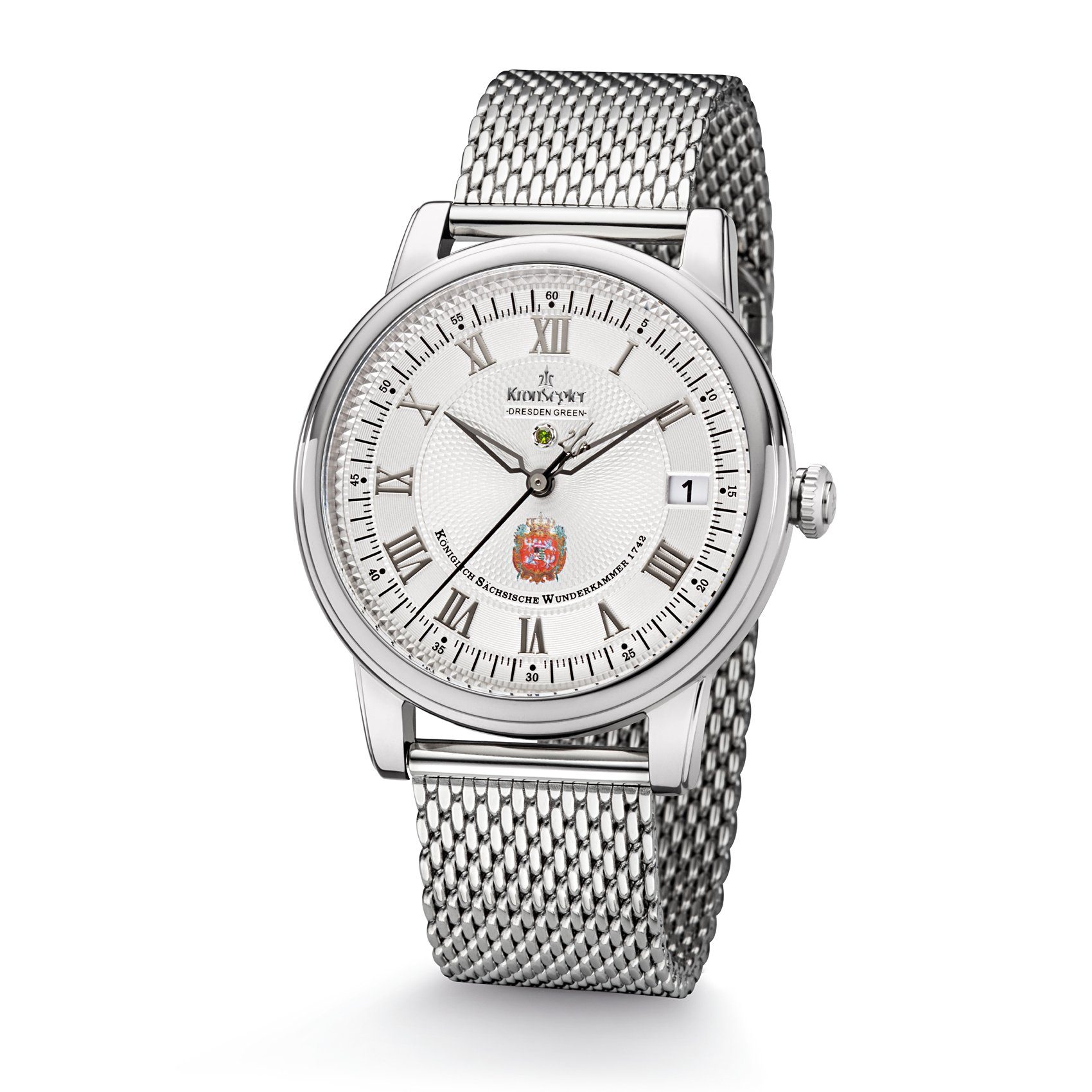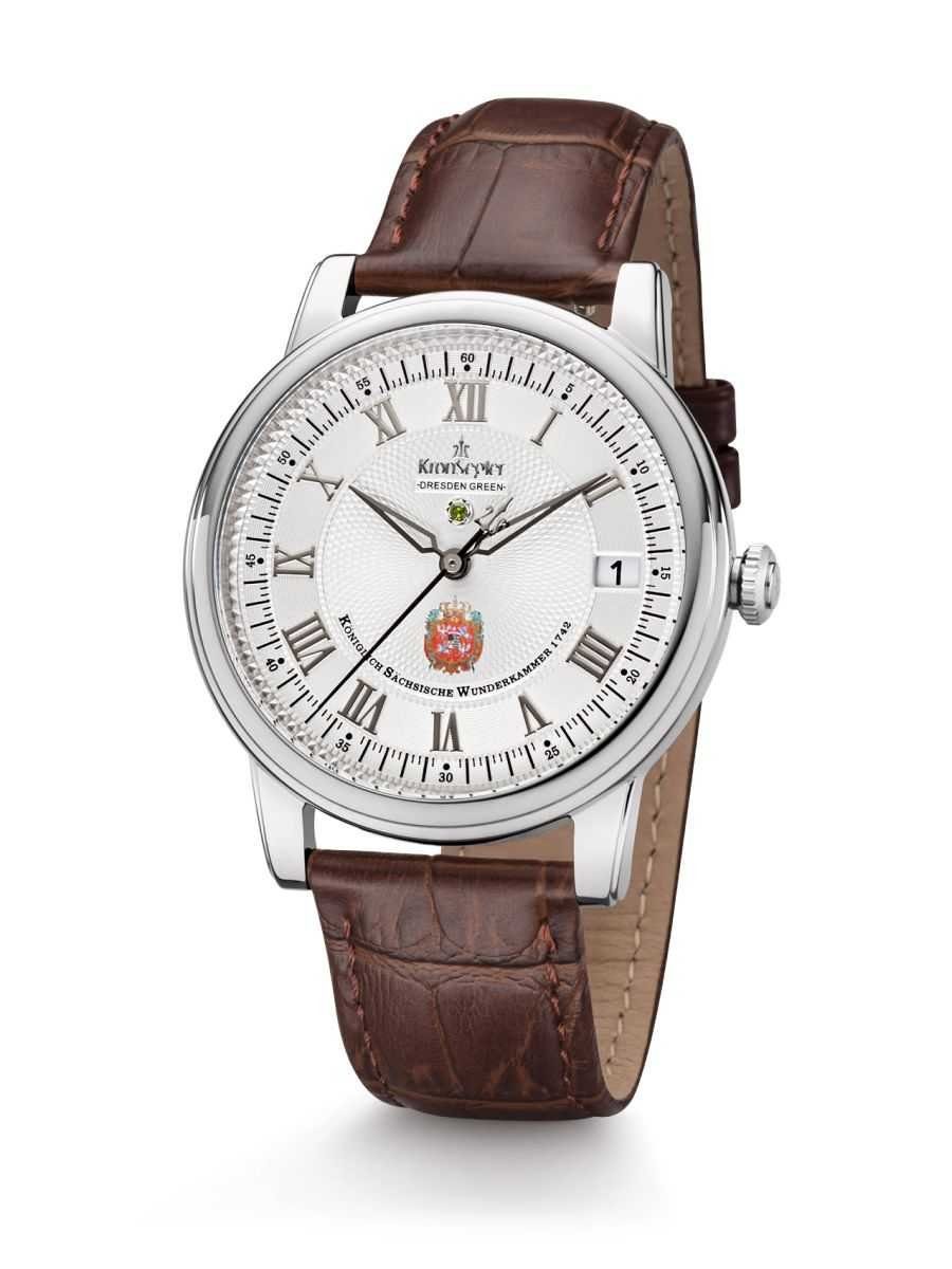 Im Dresdner Grünen Gewölbe, der "Königlich Sächsischen Wunderkammer", ruht seit 1742 der größte grüne Diamant der Welt, der "Dresden Green" (Rohmasse 119 Karat, geschliffen 41 Karat). August II von Sachsen (auch August III von Polen) brachte diesen Stein nach Dresden, welcher ursprünglich in London erworben wurde und aus Indien oder Brasilien stammt. Das kursächsische Originalwappen von 1742, stammend aus Originalschriften Friedrich Augusts an den fürstlichen geheimen Rat, und ein grüner 1,3mm großer Diamant zieren das Zifferblatt der Uhrenserie Dresden Green II.Die vollständige Geschichte und Informationen zum Grünen Diamanten sind im Prospektdownload auf www.kronsegler.de und im Booklet zur Uhr nachzulesen.
