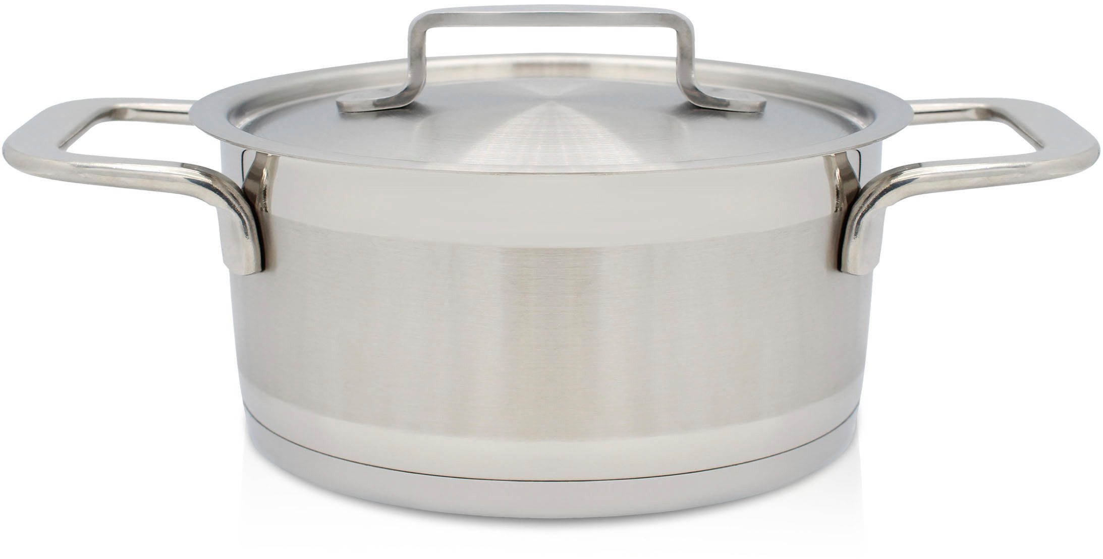 HITZEBESTÄNDIGER DECKEL: Robuster Edelstahl-Deckel mit sicherem Metallgriff für langlebige Qualität und komfortables Handling.