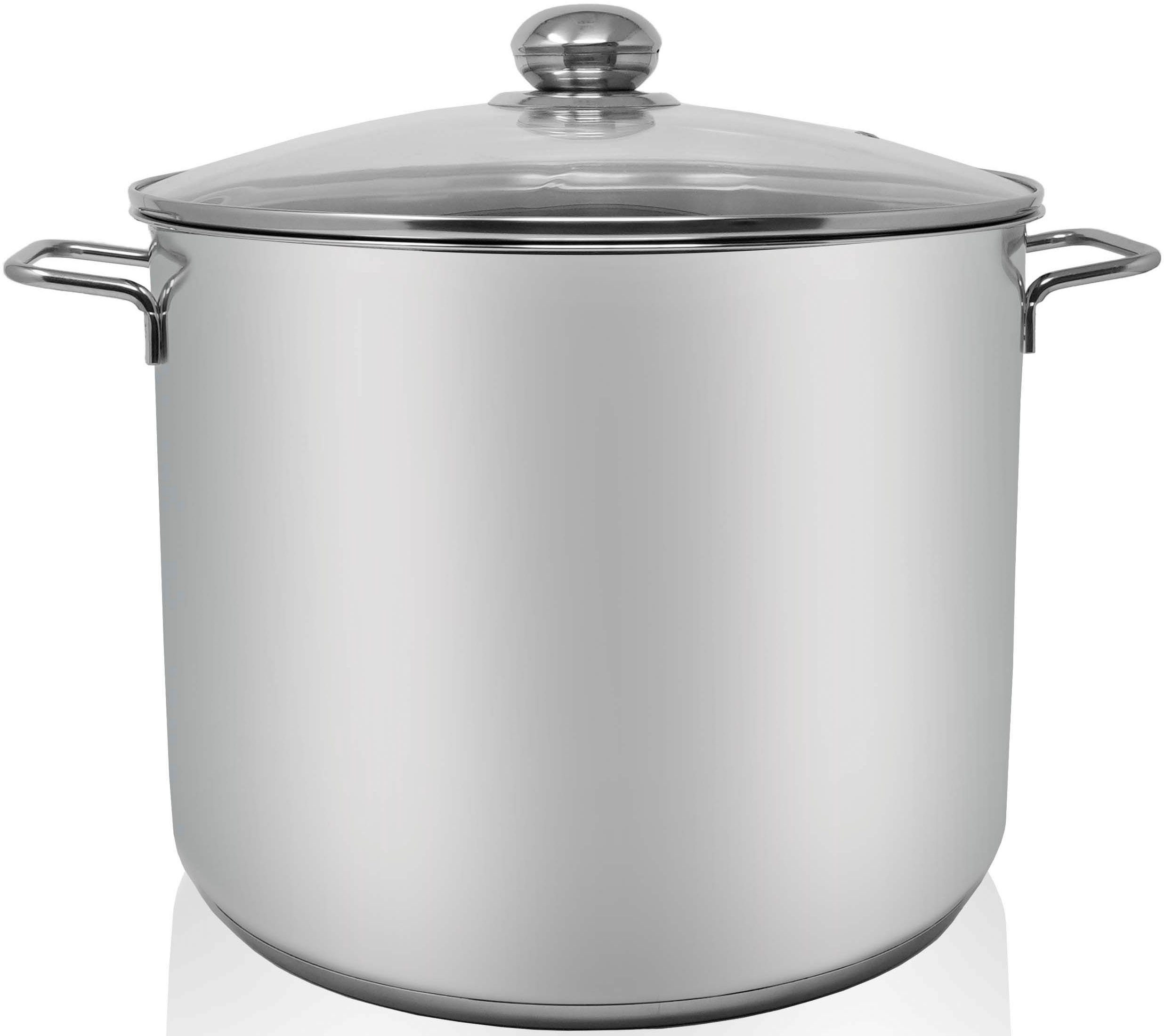 Egal ob Suppen, Eintöpfe, Pasta oder andere Köstlichkeiten in großen Mengen: Mit diesem Jumbotopf sind Sie bestens für die nächste Party oder Familienfeier gerüstet. Dank des großen Fassungsvermögens haben Sie viel Platz um Ihrer Kreativität beim Kochen freien Raum zu lassen, damit Sie Ihre Liebsten auf eine kulinarische Art verwöhnen können. Der Topf ist aus hochwertigem und rostfreiem Edelstahl gefertigt und hat isolierende Edelstahl-Hohlgriffe, die sich nicht erhitzen. Hitzebeständig ist ebenso der handliche Glasdeckel, der mit einem schlichten Edelstahlring umfasst ist. Zusätzlich wurde ein Lüftungsloch montiert, was einen übermäßigen Druckaufbau beim Kochen verhindern soll. Durch den energiesparenden Kapselboden ist der Topf auf allen Herdarten, inklusive Induktions-Kochfeldern einsetzbar. Reinigen lassen sich Topf und Glasdeckel ganz einfach und unkompliziert in der Spülmaschine.