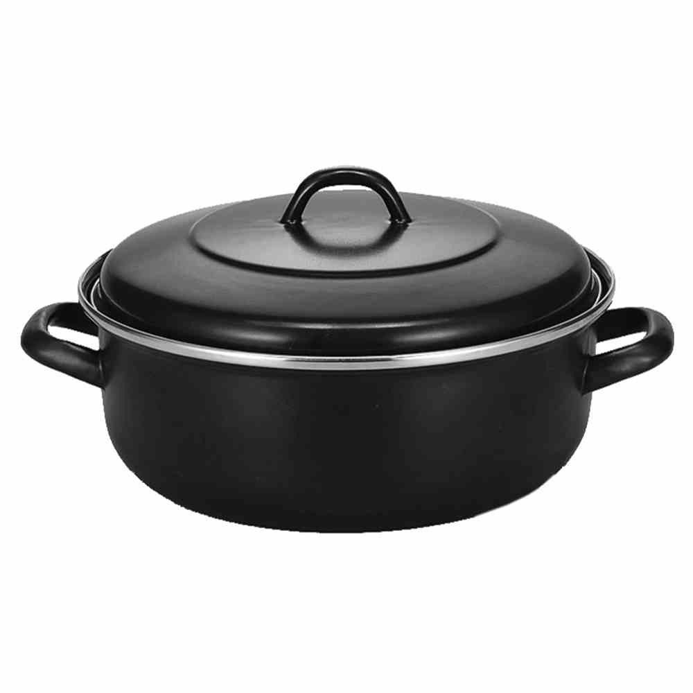 Der elegante KRÜGER Kölner Bräter überzeugt durch sein klassisches Design in schwarz matt emailliertem Stahl und ist die perfekte Wahl für köstliche Braten, saftige Schmorgerichte oder aromatische Aufläufe. Dank seiner hochwertigen Verarbeitung und einer Materialstärke von 2 mm sorgt er für eine gleichmäßige Wärmeverteilung und hervorragende Kochergebnisse.