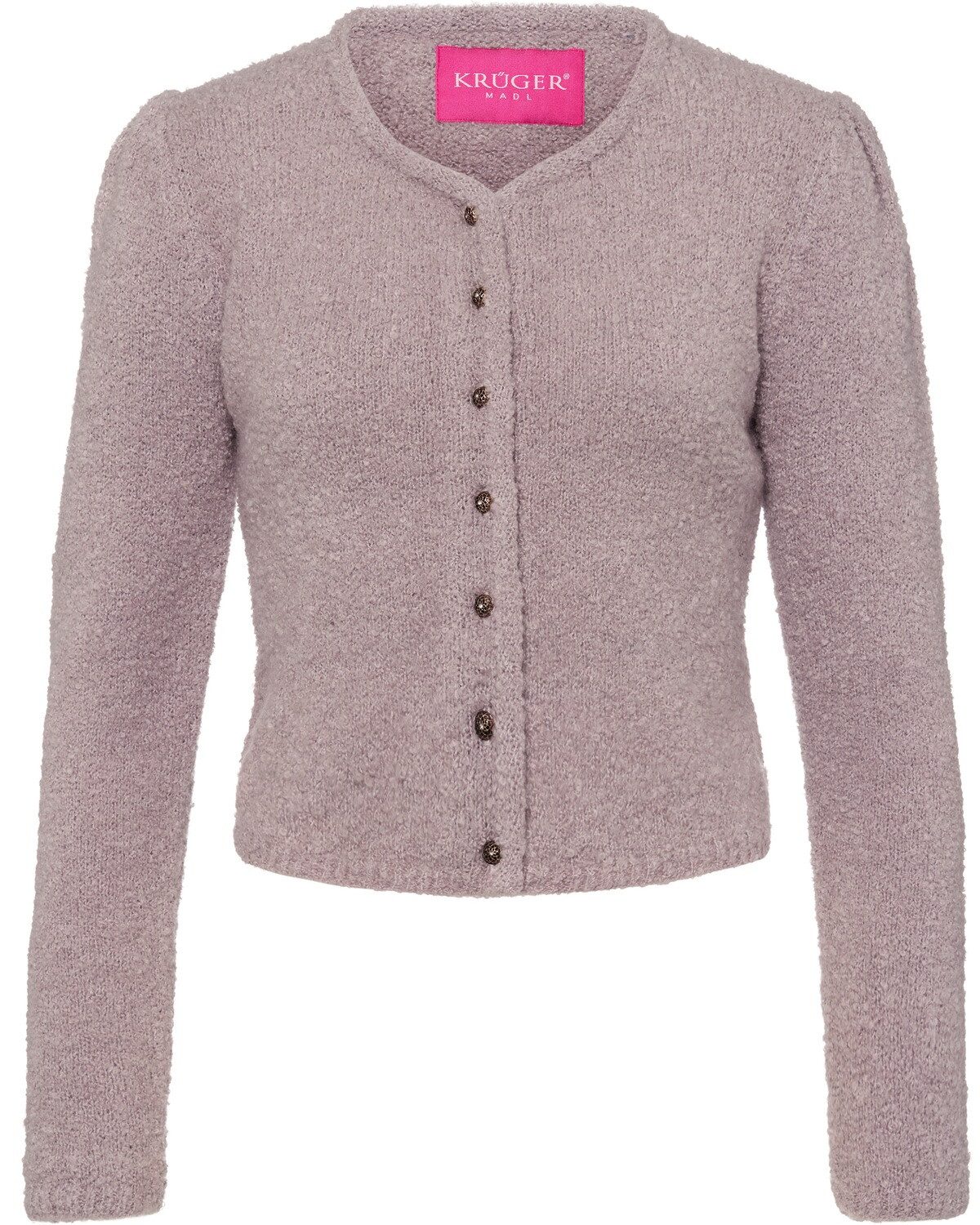 Die Damen Bouclé-Strickjacke von Kürger Madl vereint traditionelles Design mit modernem Komfort. Mit ihrem eleganten Rundhalsausschnitt und der praktischen Knopfleiste ist sie nicht nur ein stilvolles Kleidungsstück, sondern auch vielseitig kombinierbar. Die Bouclé-Struktur verleiht der Jacke eine ansprechende Textur und sorgt für einen besonderen Look, der sowohl im Alltag als auch bei festlichen Anlässen überzeugt. Der hochwertige Materialmix garantiert ein angenehmes Tragegefühl und eine optimale Passform. Die Strickjacke bietet eine ideale Ergänzung zu Dirndln und Trachtenoutfits, ohne dabei an Eleganz einzubüßen. Sie lässt sich mühelos über verschiedene Oberteile tragen und ist somit ein unverzichtbares Element jeder Trachtenmode-Garderobe. Dank ihrer zeitlosen Gestaltung und der liebevollen Verarbeitung ist die Bouclé-Strickjacke nicht nur ein modisches Statement, sondern auch ein langlebiges Kleidungsstück, das viele Jahre Freude bereitet. Perfekt für besondere Anlässe oder entspannte Stunden im Freien, wird sie schnell zum Lieblingsstück in jeder Trachtenkollektion. Oberstoff: 59% Polyacryl, 20% Alpaka, 20% Wolle, 1% Elasthan
