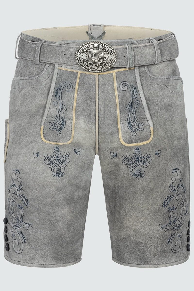 Die Lederhose Lucius mit Gürtel vereint stilvolle Eleganz mit modernen Akzenten. Die fein bestickte Lederhose zieht durch ihre detailverliebte Verarbeitung alle Blicke auf sich und ist ideal für festliche Anlässe oder den alltäglichen Trachtenlook. Praktische Hosentaschen bieten ausreichend Platz für deine wichtigsten Utensilien, während die robusten Knöpfe für einen komfortablen und sicheren Verschluss sorgen. Der im Lieferumfang enthaltene Gürtel setzt nicht nur modische Akzente, sondern sorgt auch für eine perfekte Passform. Mit der Lederhose Lucius triffst du eine stilbewusste Wahl und setzt ein klares modisches Statement, das deinen guten Geschmack unterstreicht.