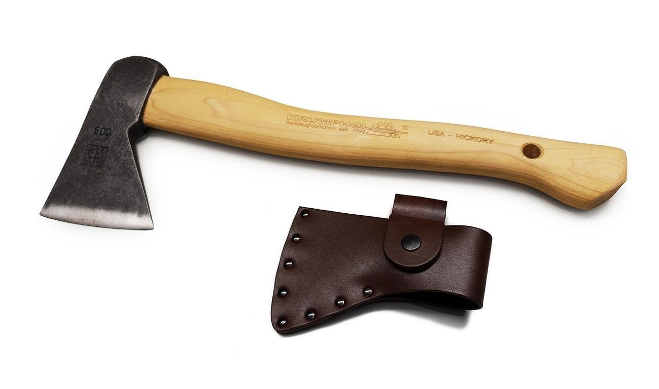 Wildererbeil von Krumpholz mit waidgerechtem runden Rücken und mit Lederschutz.Kopfgewicht 600gr.neues Produkt 2020.