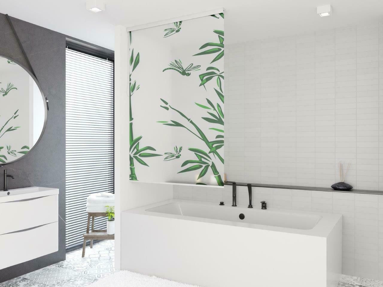 Halb-Kassetten Duschrollo 60x190 cm Modell Bambus weiß grün Duschvorhang