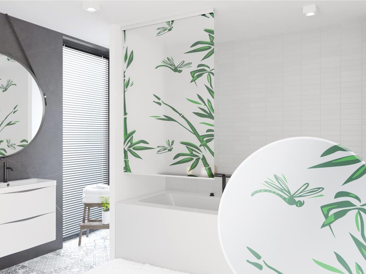 Halb-Kassetten Duschrollo 140x190 cm Modell Bambus weiß grün Duschvorhang