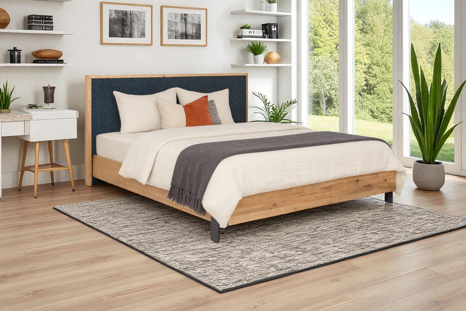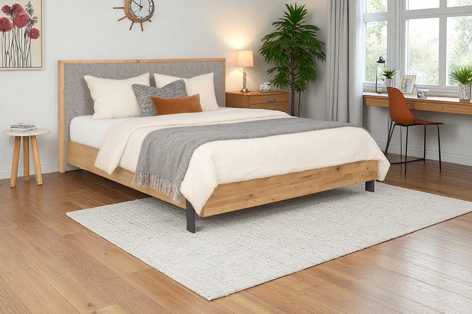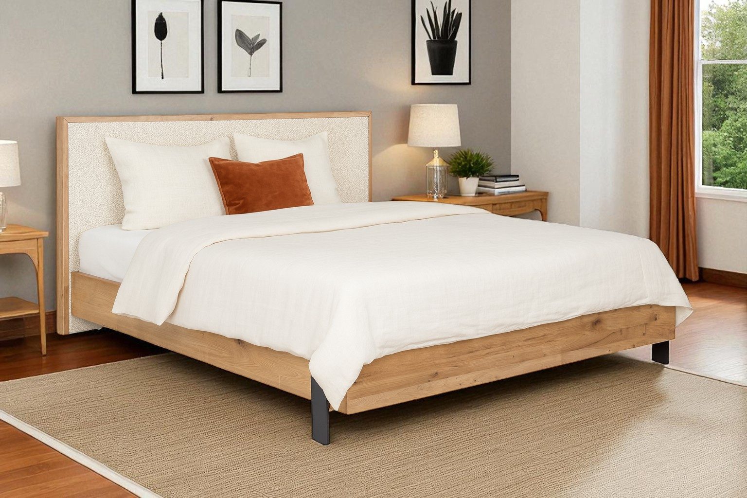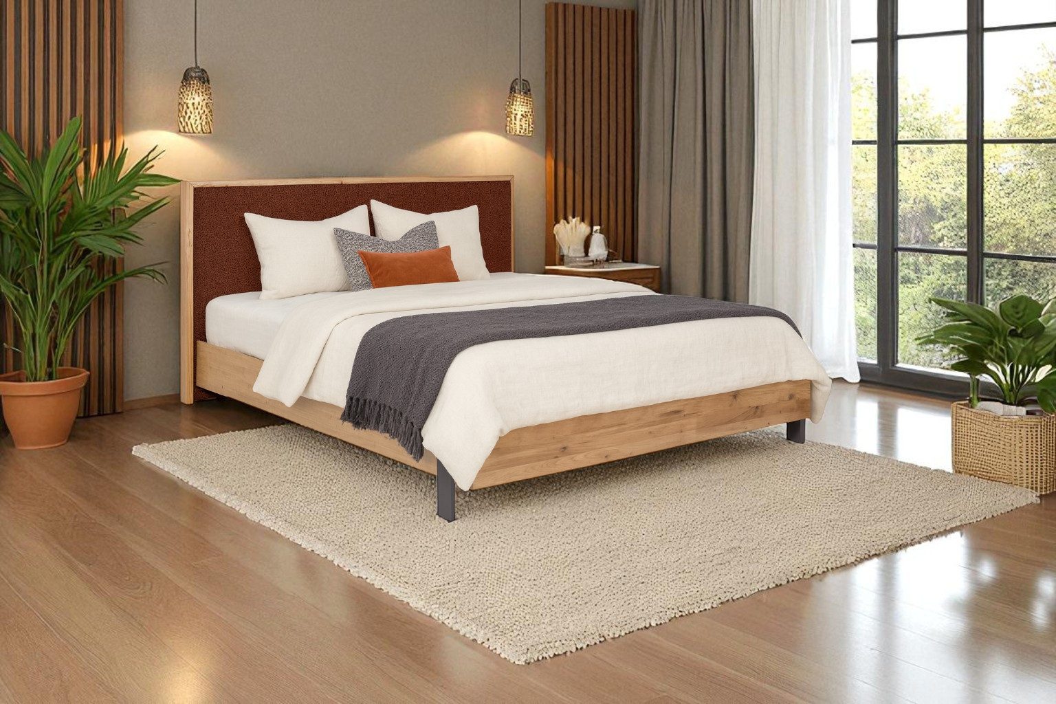 Korpusmaterial: Kopfteil Eichenholz + Spanplatte, Seiten 100 % Eichenholz, Metallrahmen