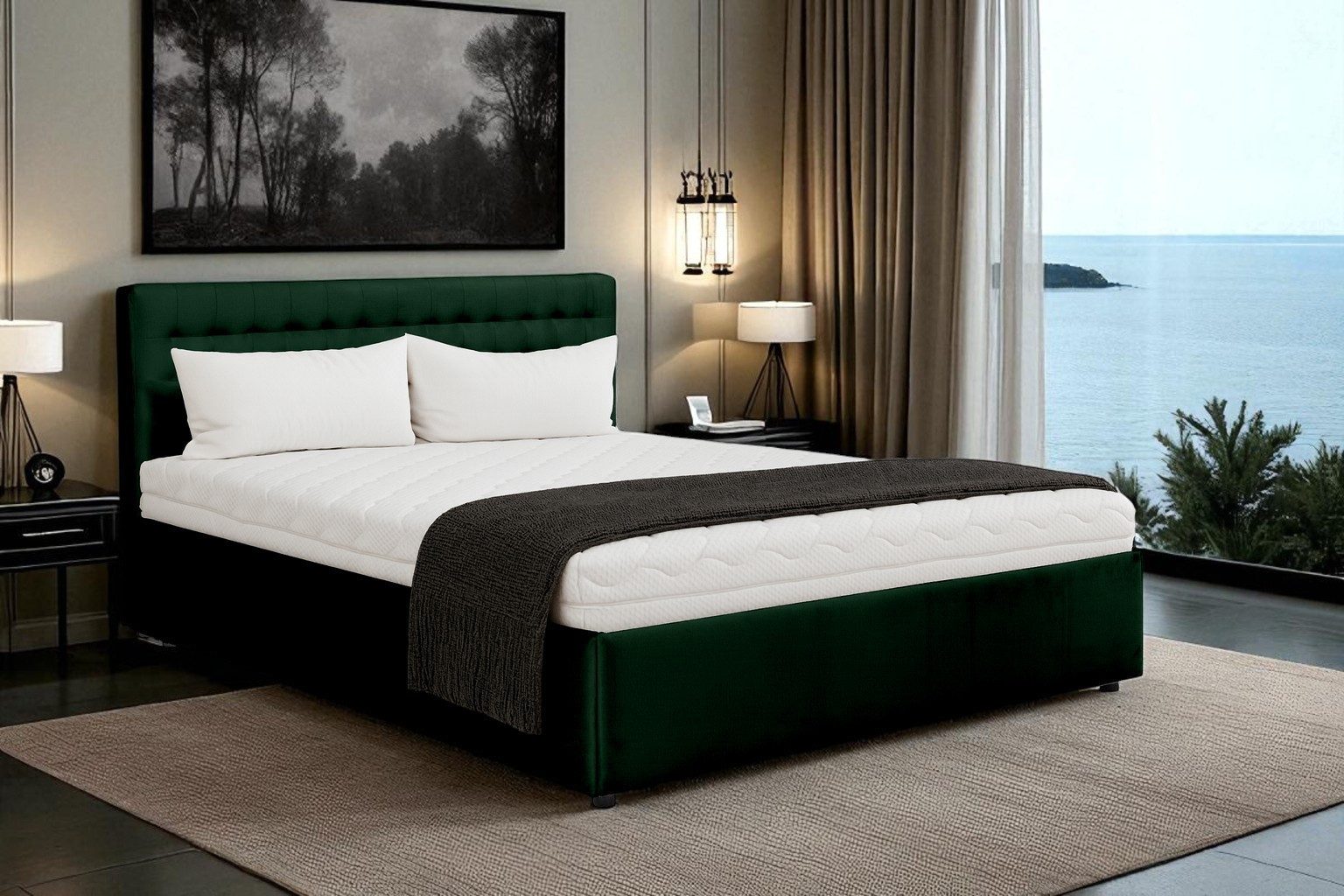 Dieses moderne Polsterbett vereint zeitloses Design mit höchstem Komfort – die perfekte Wahl für ein gemütliches und stilvolles Schlafzimmer. Dank der großen Auswahl an Stoffen und Farben lässt sich das Bett an jeden Einrichtungsstil anpassen und wird so zum harmonischen Mittelpunkt Ihres Zuhauses. Die stabile Konstruktion und die robusten Beine sorgen für lange Lebensdauer und zuverlässigen Halt, während die sorgfältige Verarbeitung dem Bett eine warme, einladende Atmosphäre verleiht.