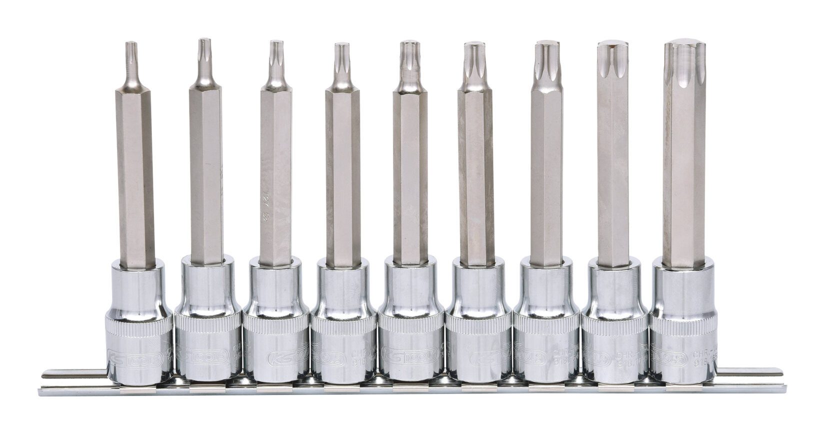 KS Tools 1/2" CHROMEplus Bit-Stecknuss-Satz Torx, lang, 9-teilig T20-T60