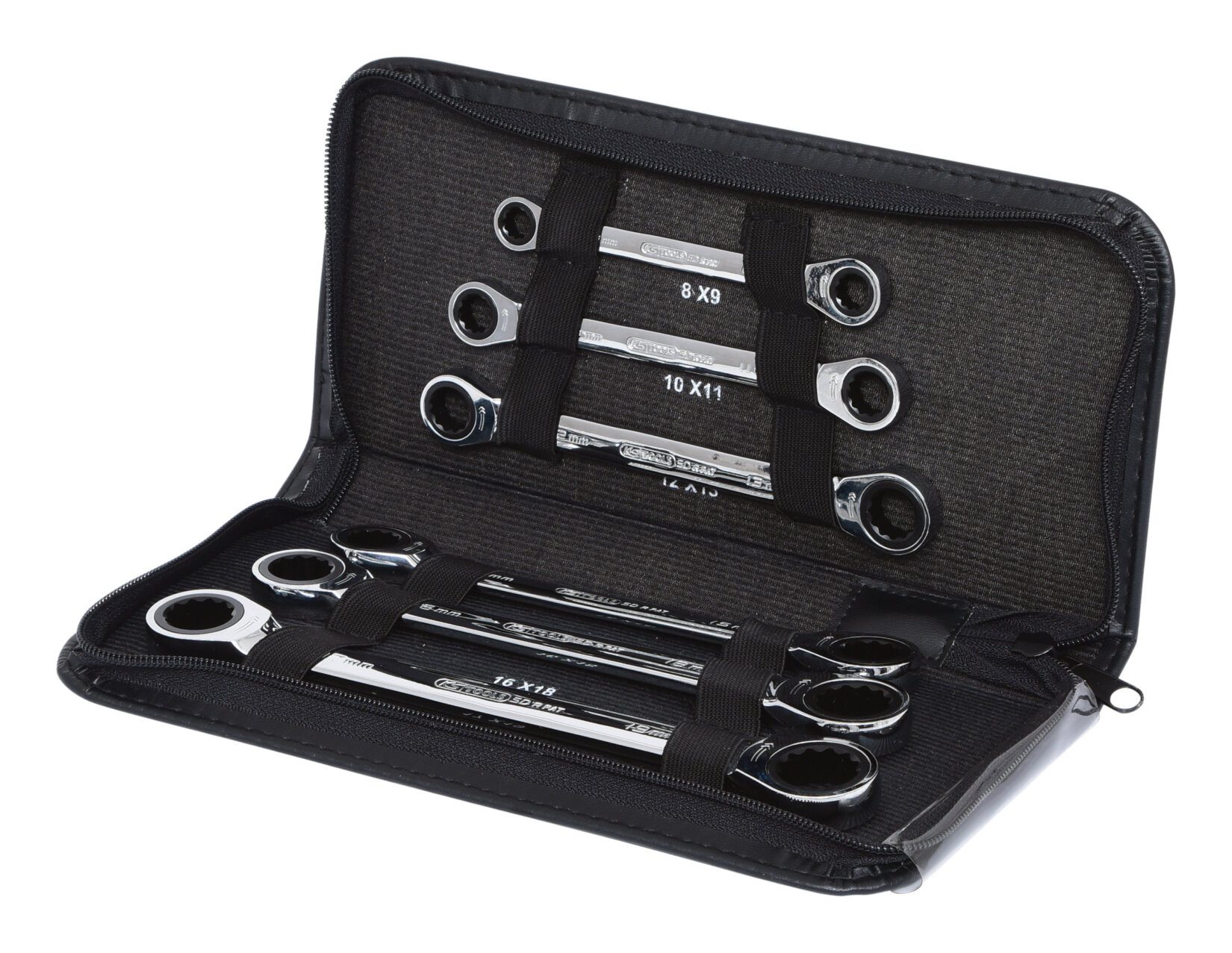 KS Tools GEARplus Doppel-Ratschenringschlüssel-Satz, 6-teilig Lederetui