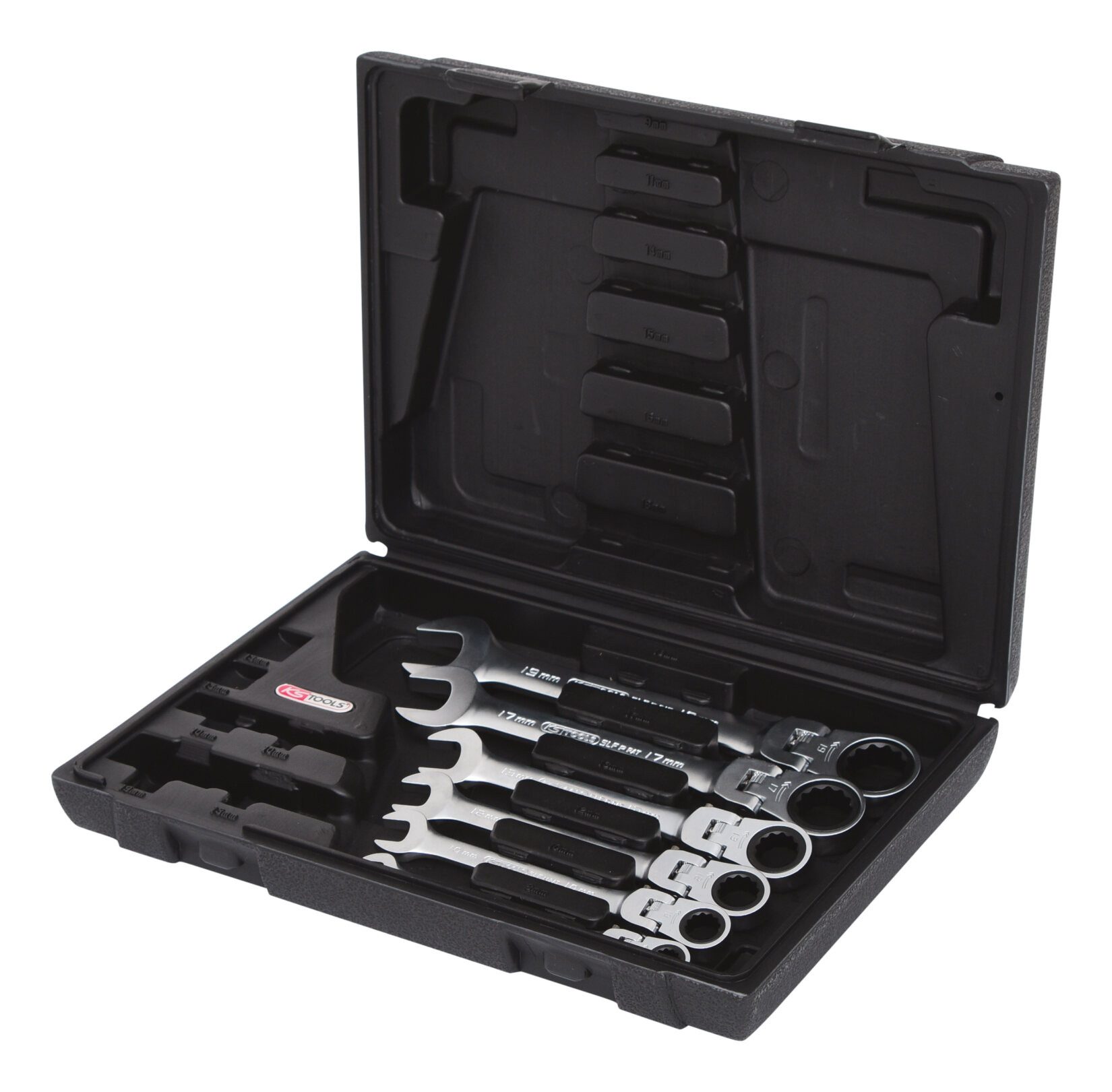 KS Tools GEARplus Gelenk-Ratschenringmaulschlüssel-Satz, 6-teilig feststellbar