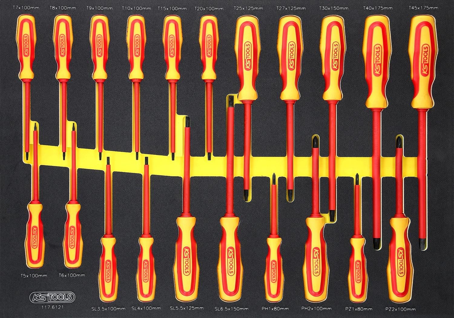 KS Tools Werkzeugwagen ERGOTORQUE VDE Schraubendreher-Satz in Schaumstoffeinlage, 21-tlg