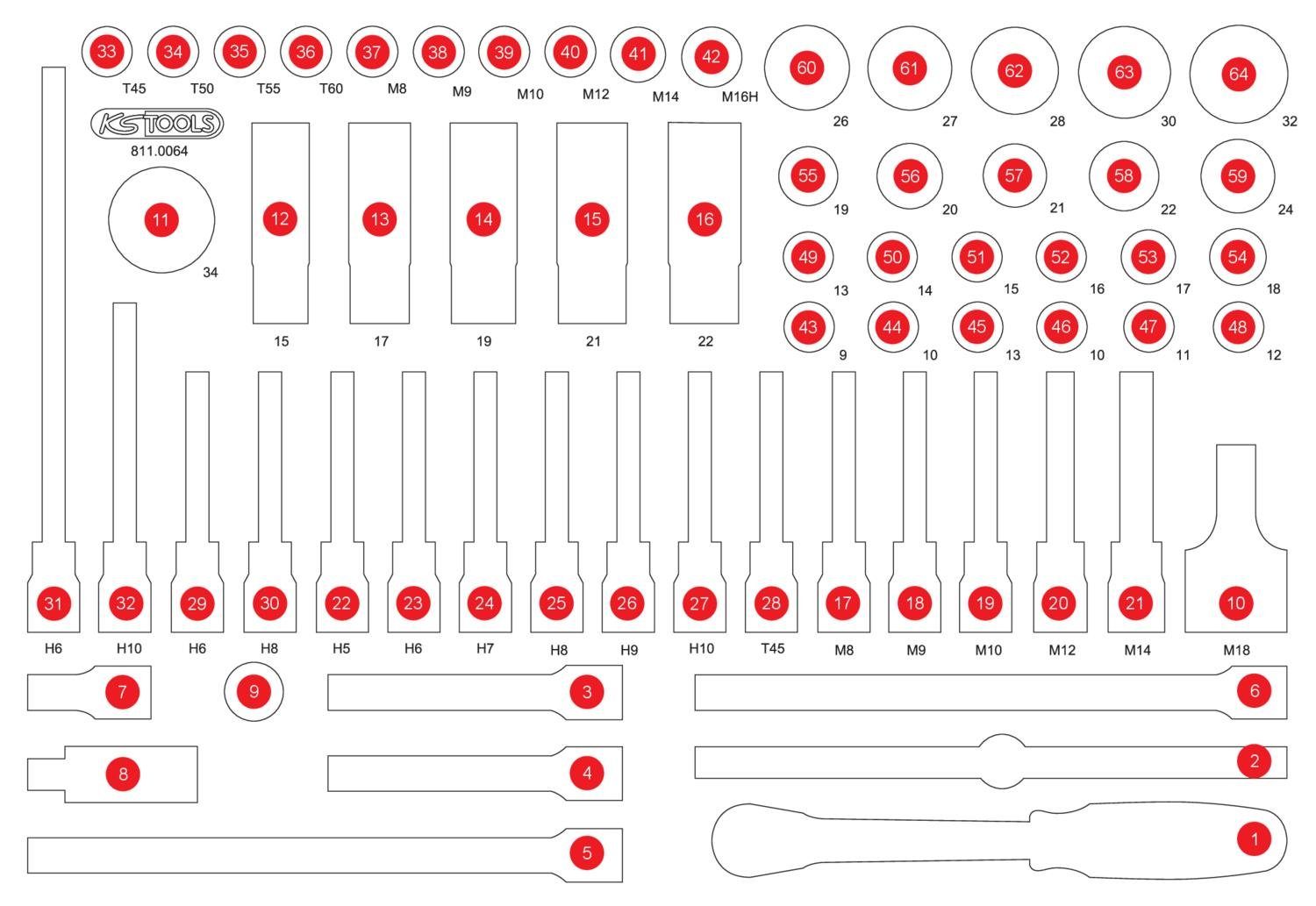 KS Tools Werkzeugwagen Leere Schaumstoffeinlage zu 811.0064